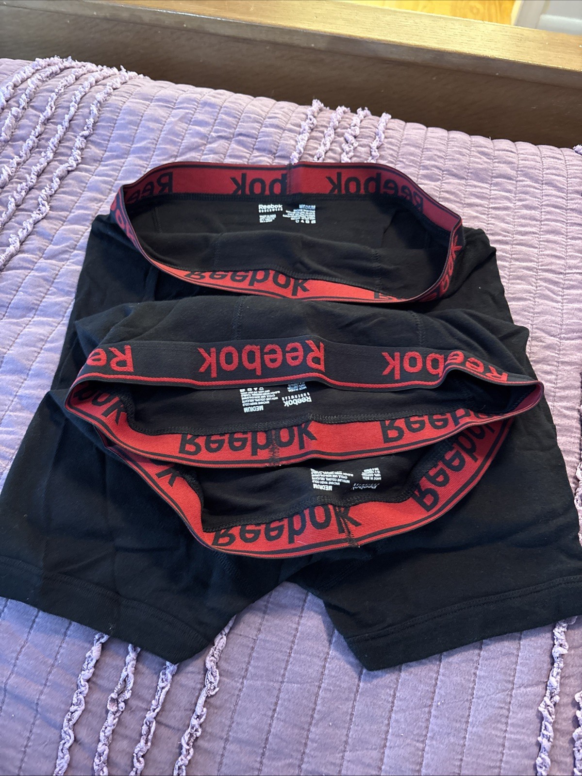 3 Pairs Of Black Reebok Boxer Briefs Size Medium Red Piping 100 Cotton