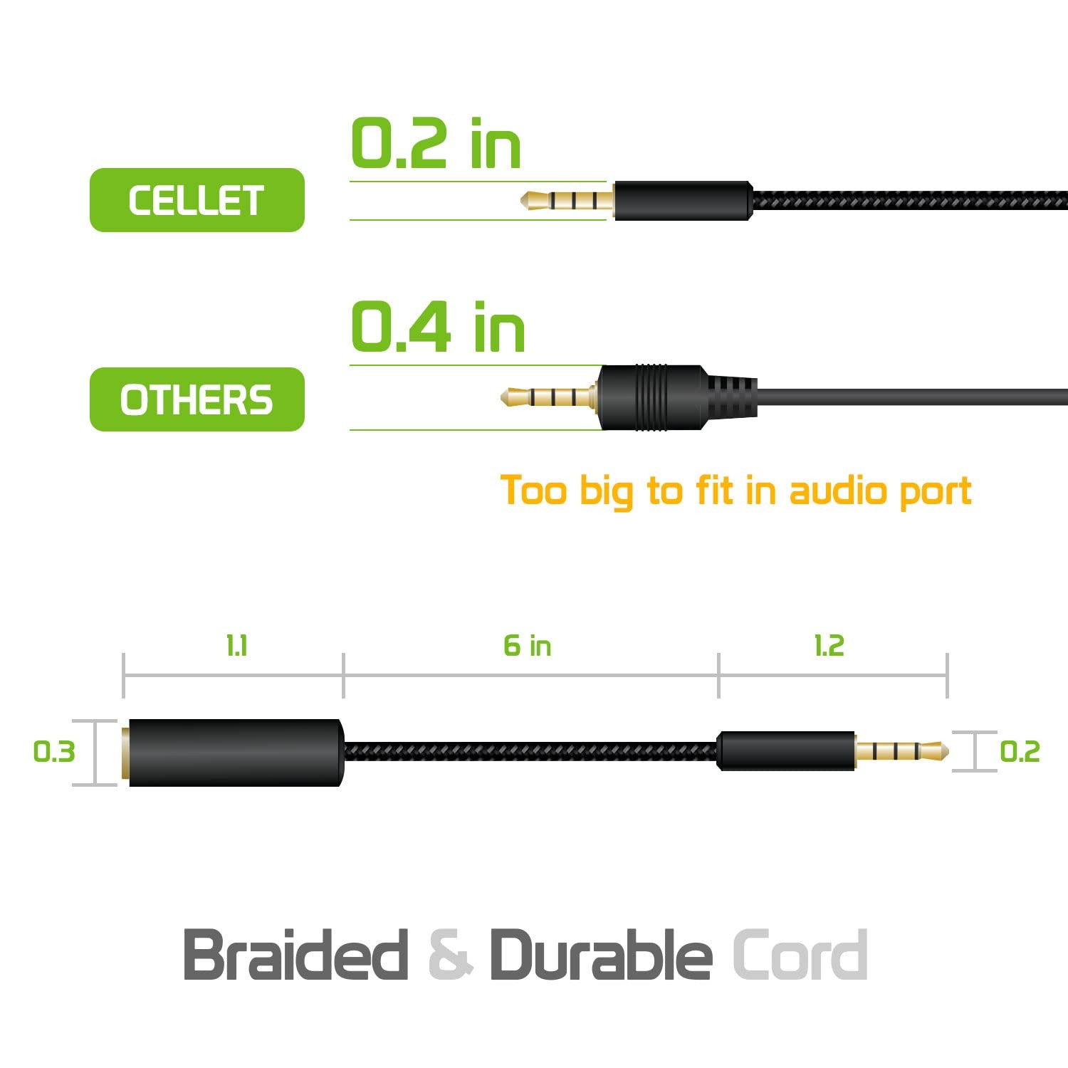 Cellet Gold Plated 3.5mm TRRS Male to Female Audio Adapter for 6 Inch, Black