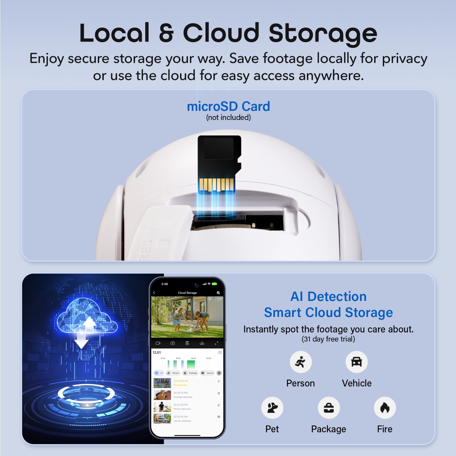 Особенности: Outdoor/Weatherproof, Wi-Fi, Auto Follow, Color Night Vision, Micro SD slot 128GB, Motion Alerts, Pan and Tilt, Share Access with Family, Smart Spotlight, Voice Control