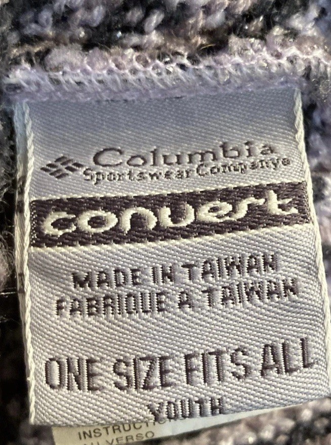 Columbia Purple Winter Hat Convert OSFA Youth Beanie Warm Lining NWOT Rare