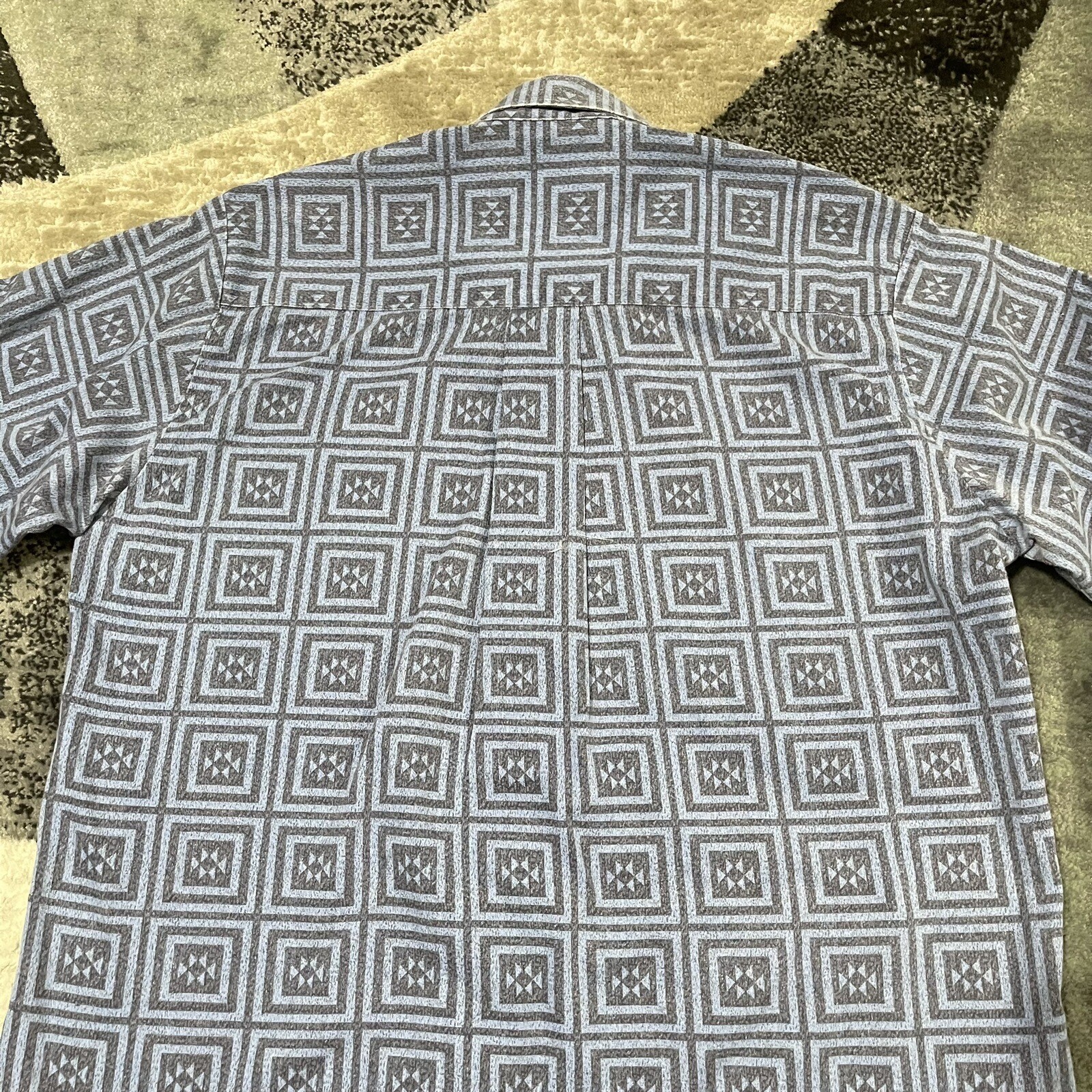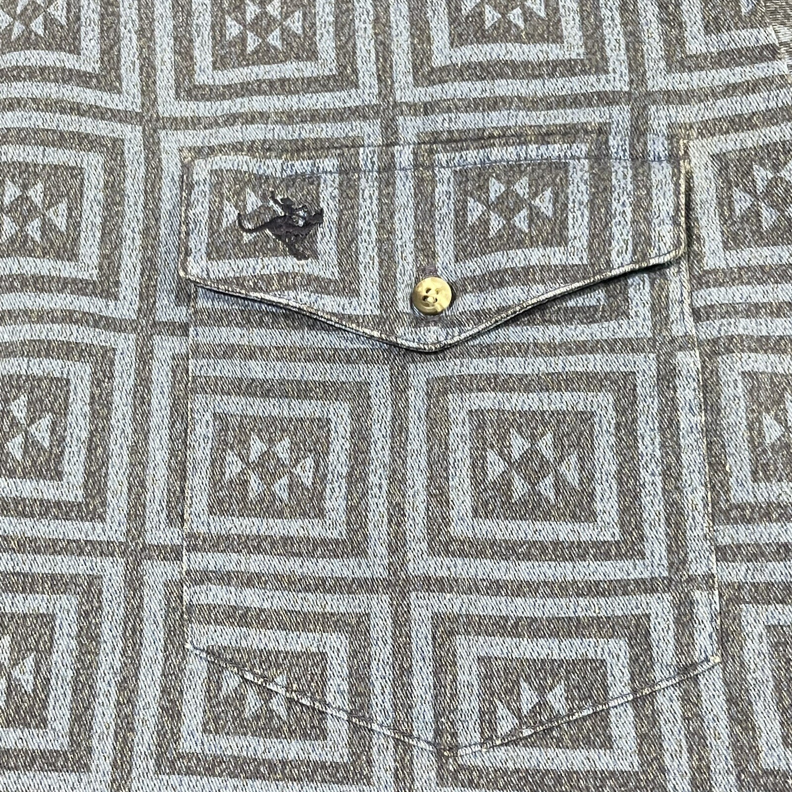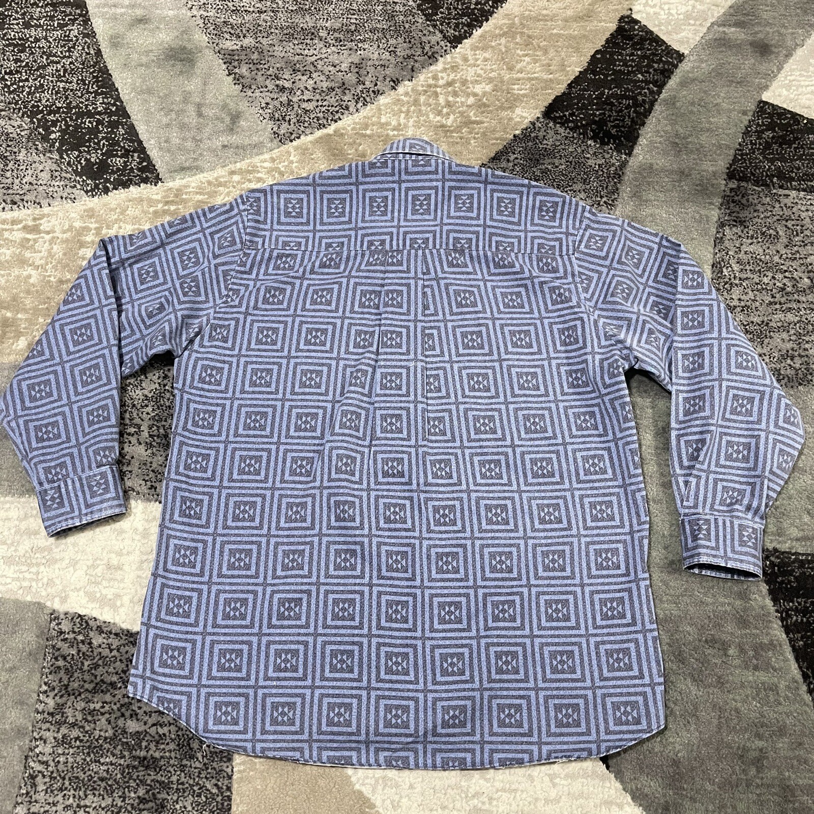 как выглядит Vintage Roper Lone Roo Brushpopper Western Shirt Men XL 17.5 Blue Geo Button USA фото