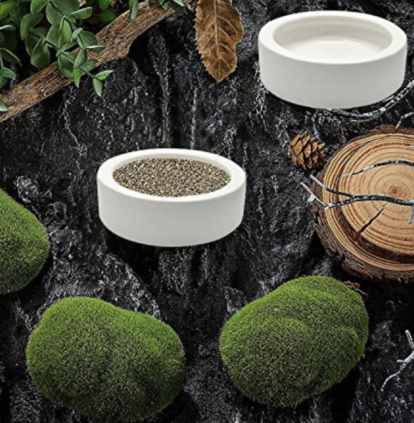 iHomeSet 2 Pcs Reptile Food Bowl Ceramic Water Feeder Bowls Anti- Escape Mini