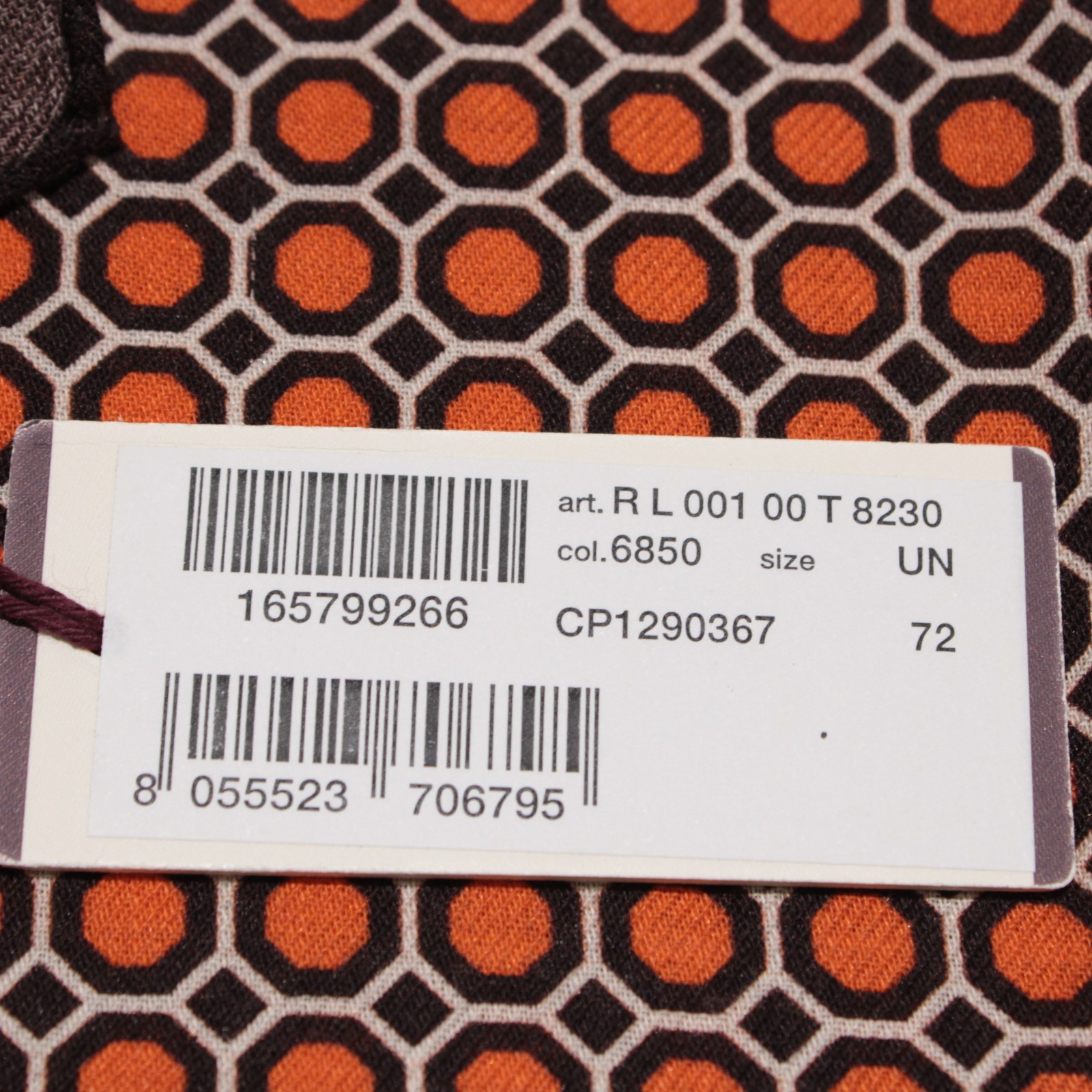 как выглядит Roda NWT Wool Silk Pocket Square In Brown with Orange Cream Geometric Print фото