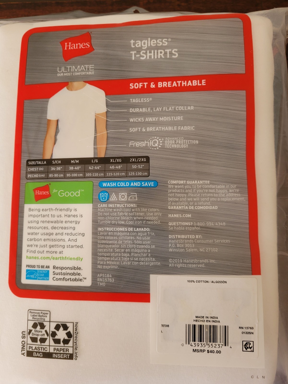 как выглядит Hanes Ultimate Tagless Breathable Odor Control T-Shirts White L 6-Pack Men
