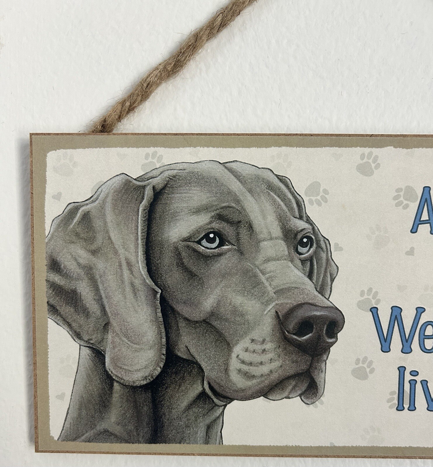 как выглядит A Spoiled Rotten Weimaraner Lives Here Paw Prints DOG SIGN 5x10  HANGING SIGN фото