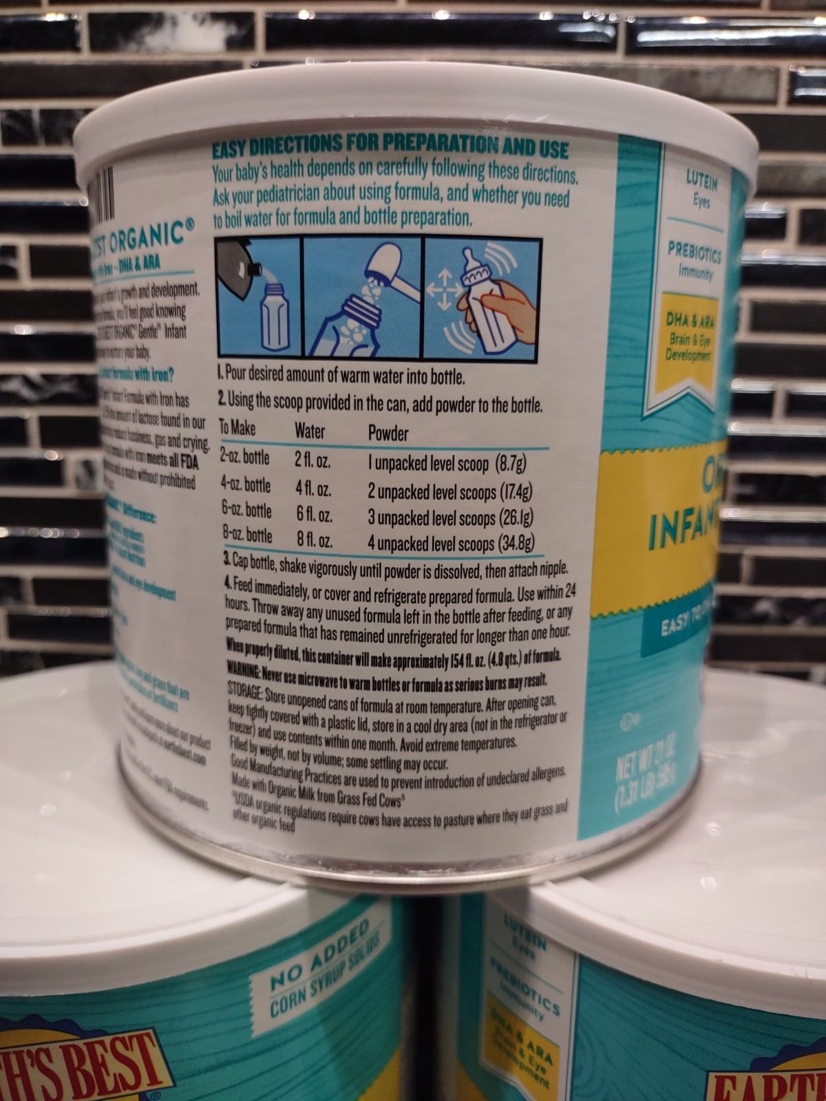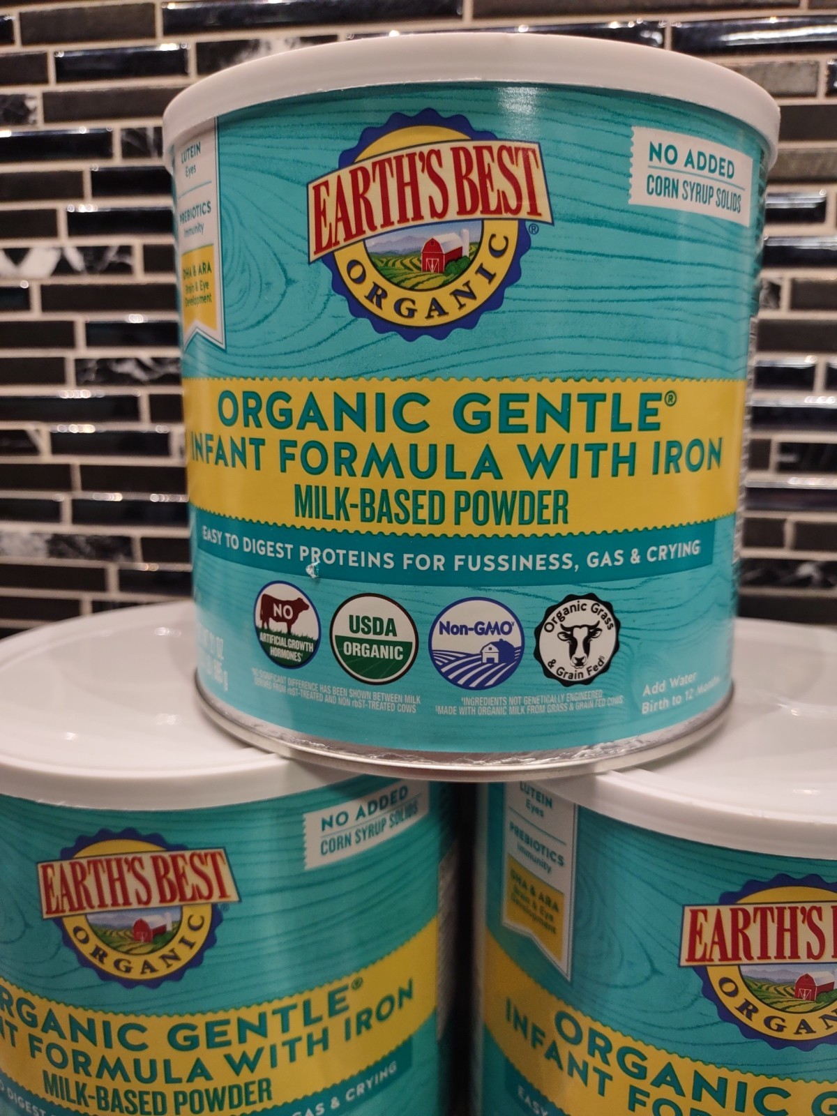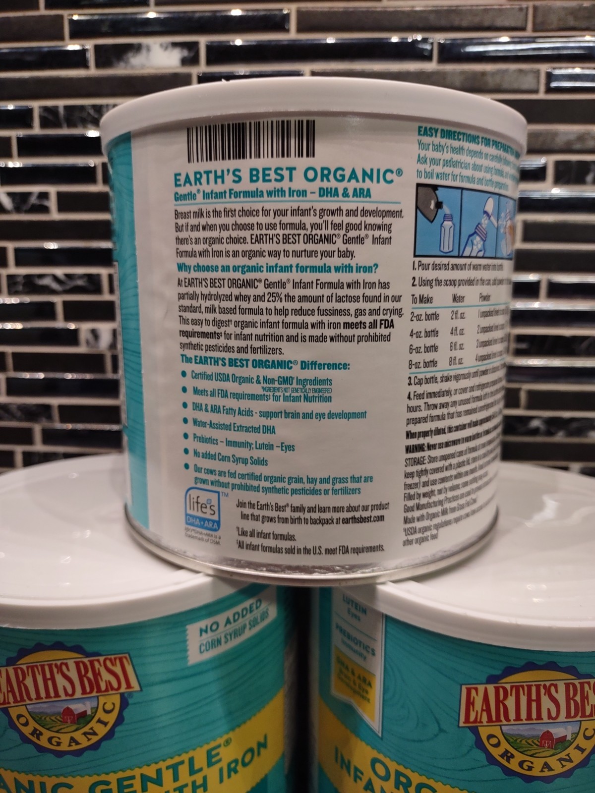 Qty. 3 Cans Earth's Best Organic Gentle Infant Formula With Iron Exp 07/28/26