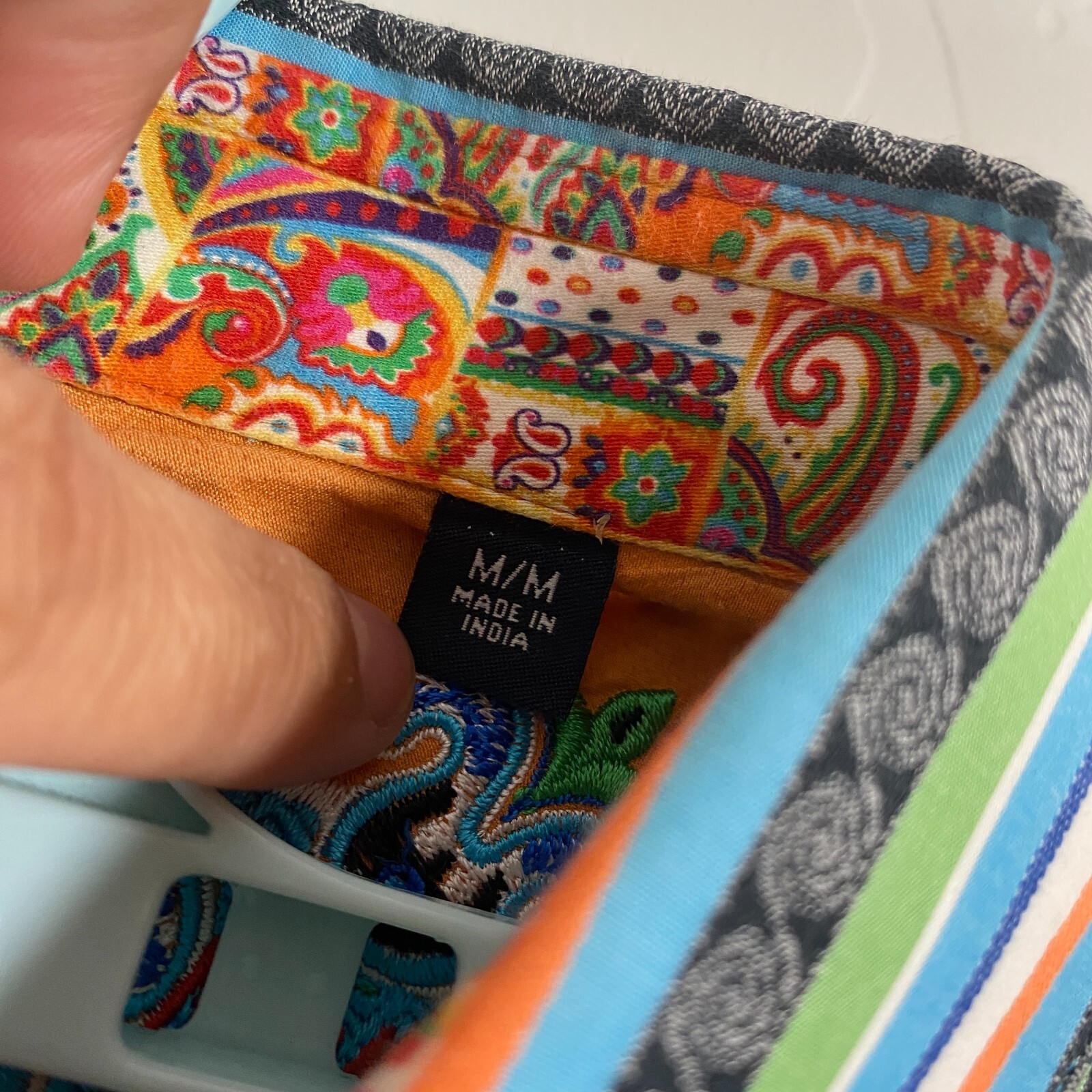 как выглядит Robert Graham Shirt Mens Medium Blue Flip Cuff Button Up Colorful Striped фото