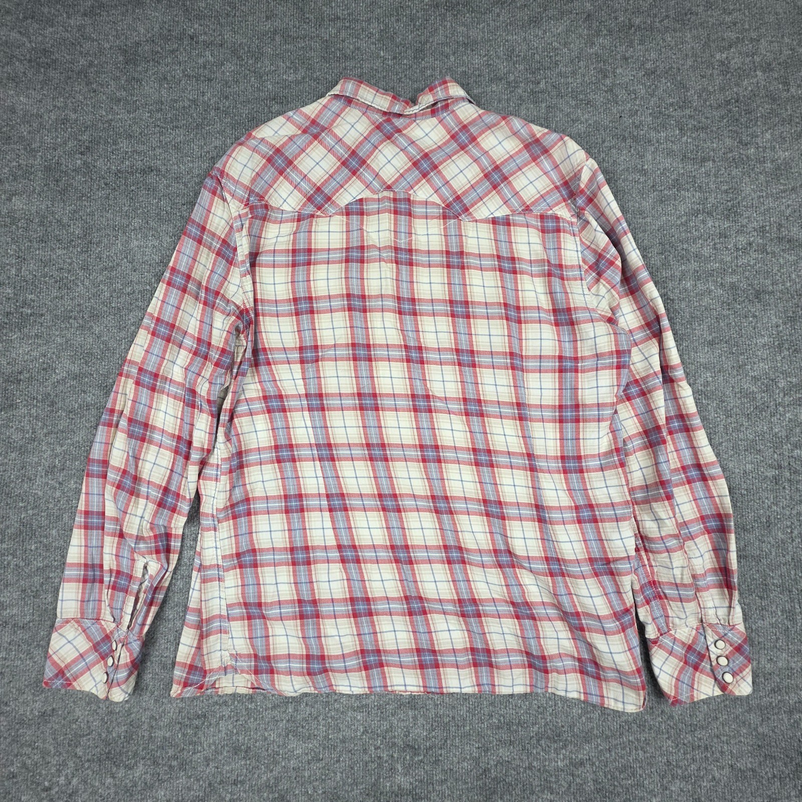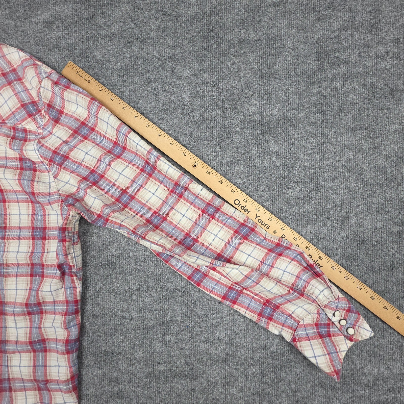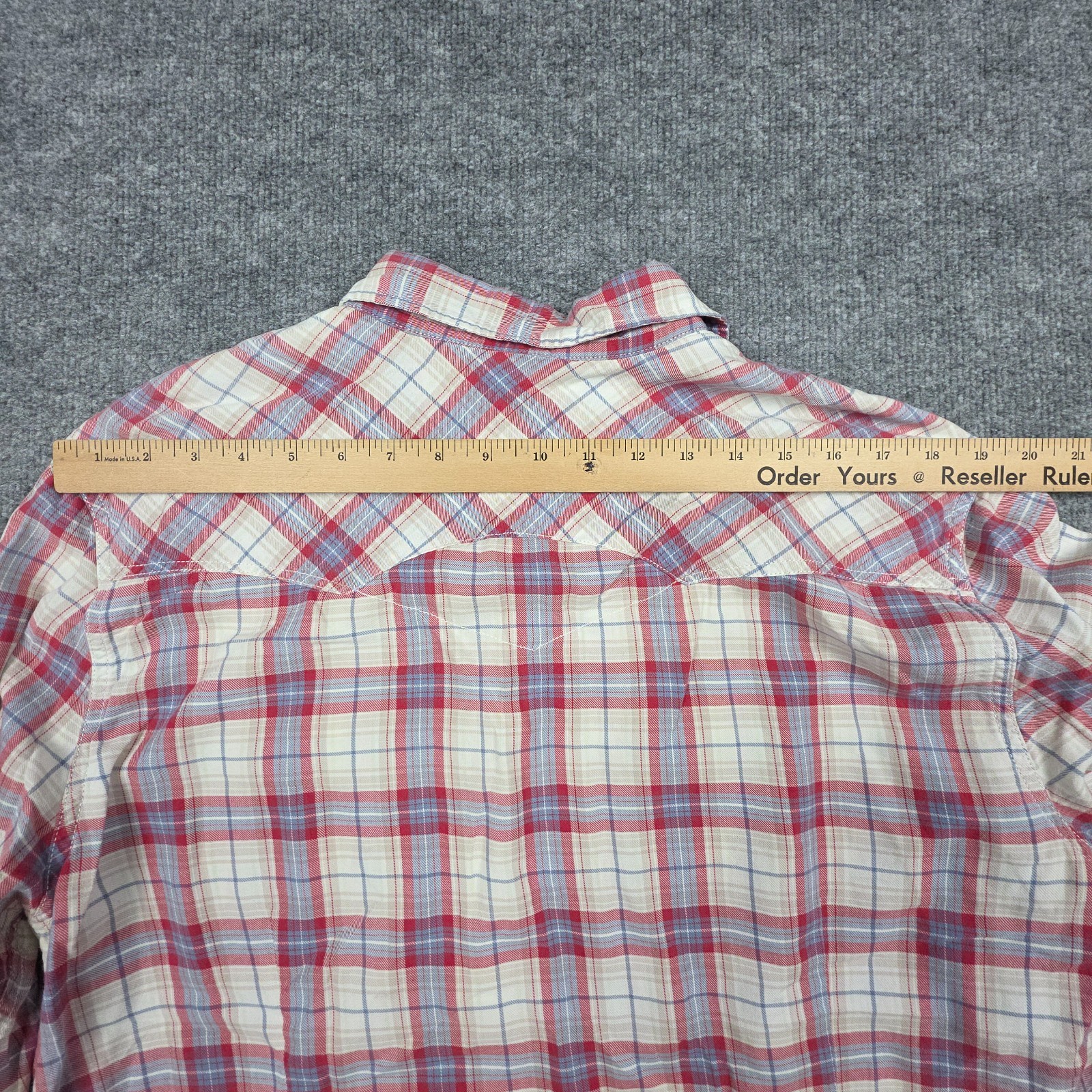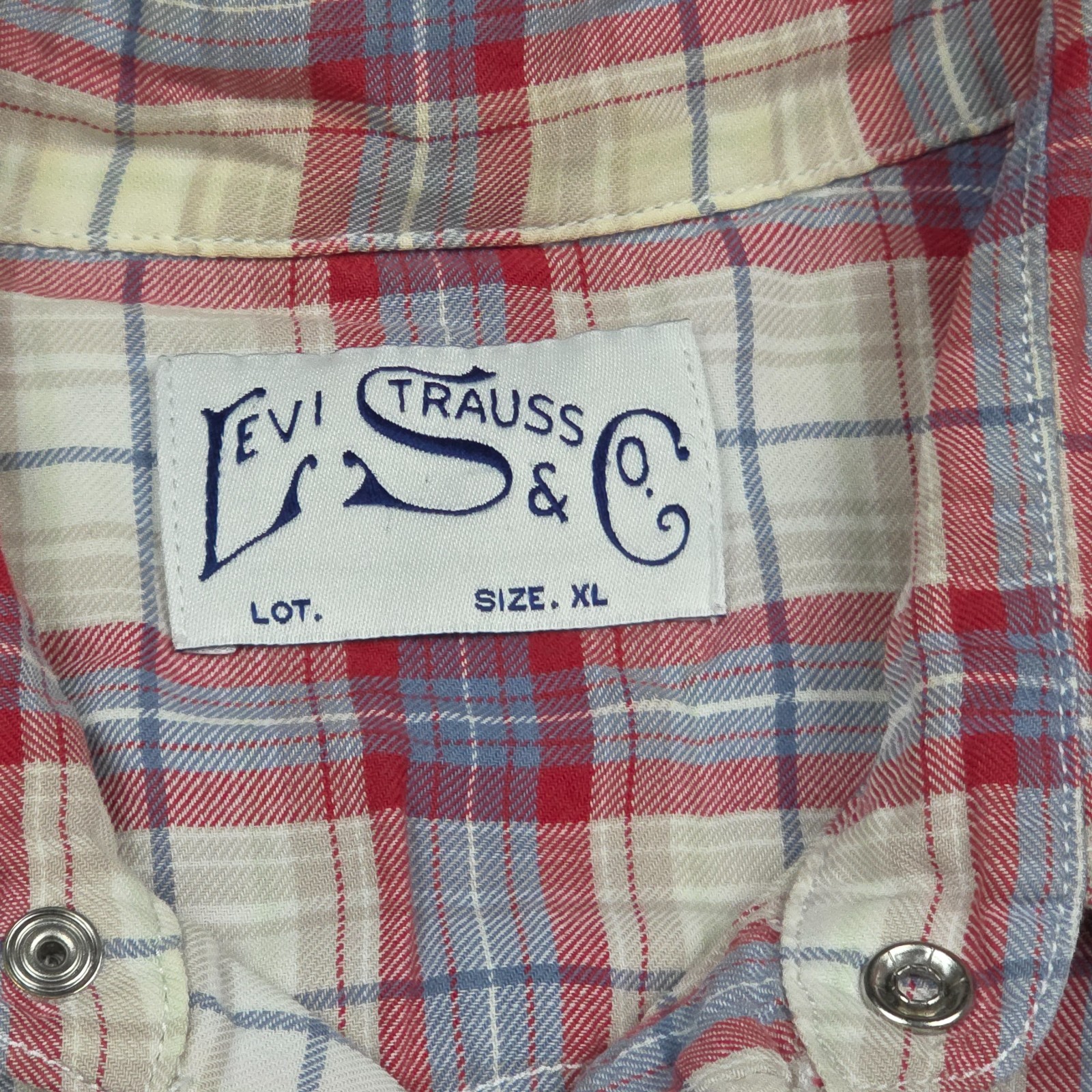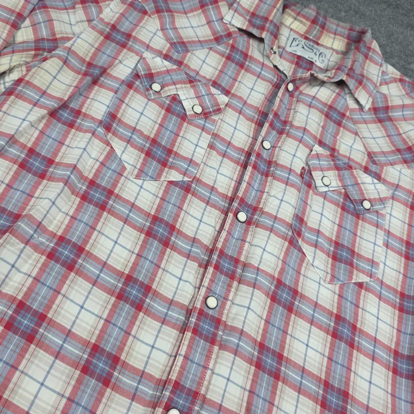Vintage Levis Pearl Snap Shirt Mens XL White Red Plaid Sawtooth Western