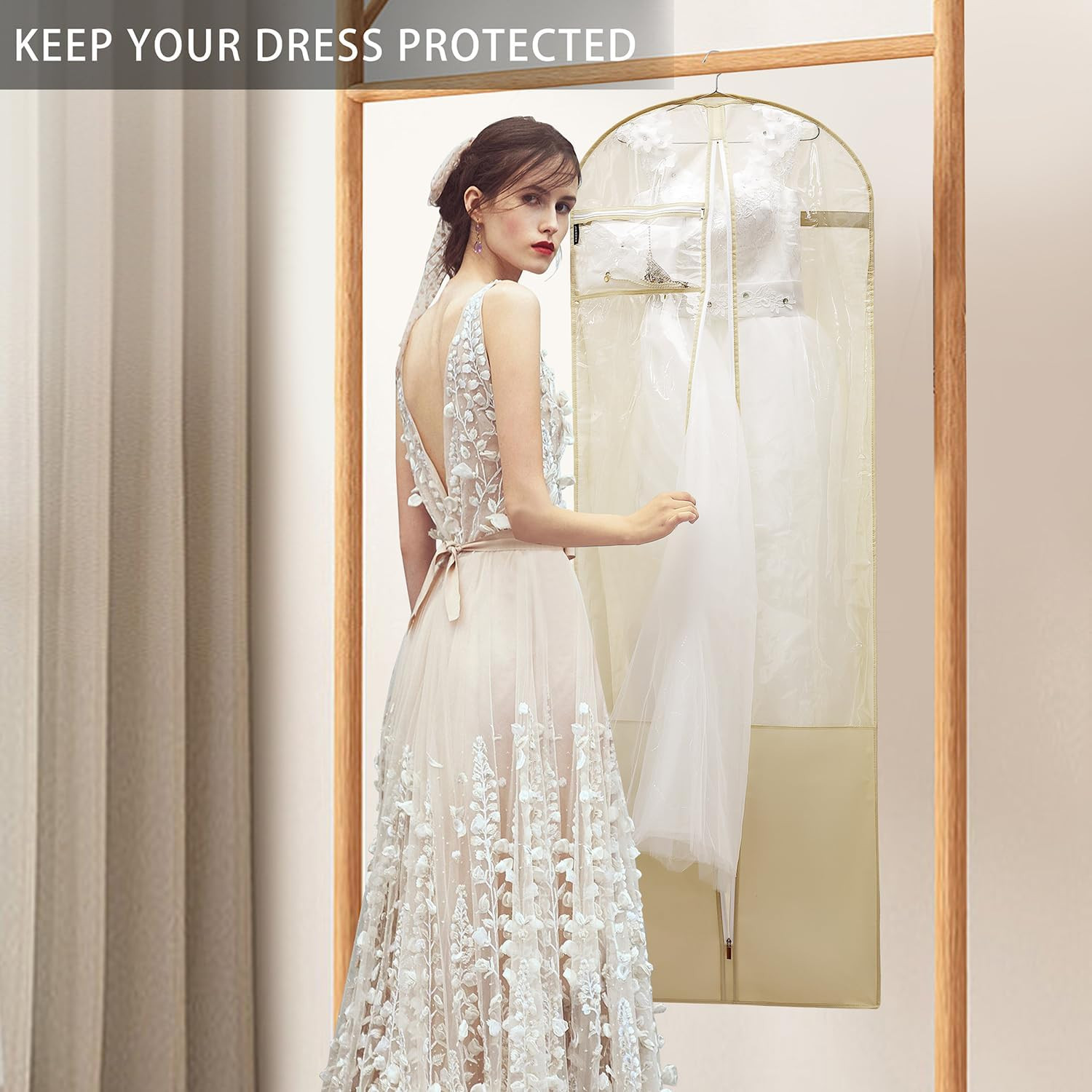 70 Bridal Wedding Dress Bag with Gusset Travel Garment Bag for Gowns Beige