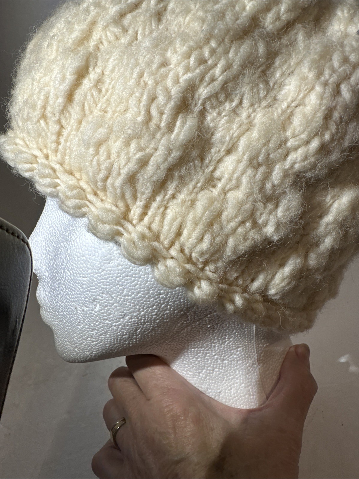как выглядит Cream Color Chunky Knit Wool-Blend Slouchy Beanie Cap Hat Handmade фото