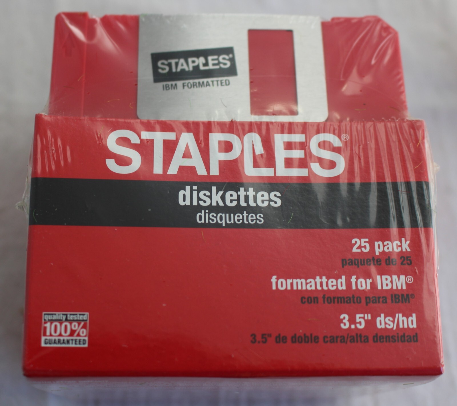 Staples 3.5 Floppy Disks Diskettes 25 Pack Multi-Colored Pack Formatted for IBM