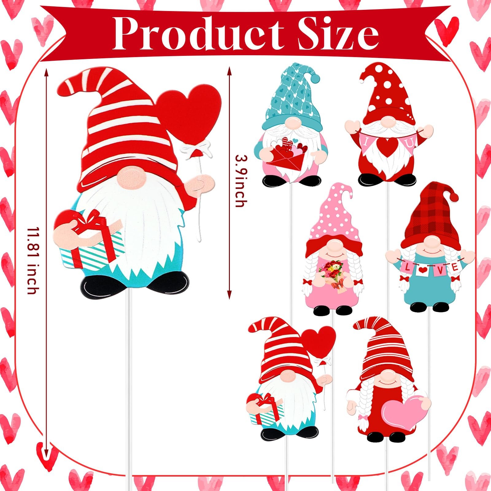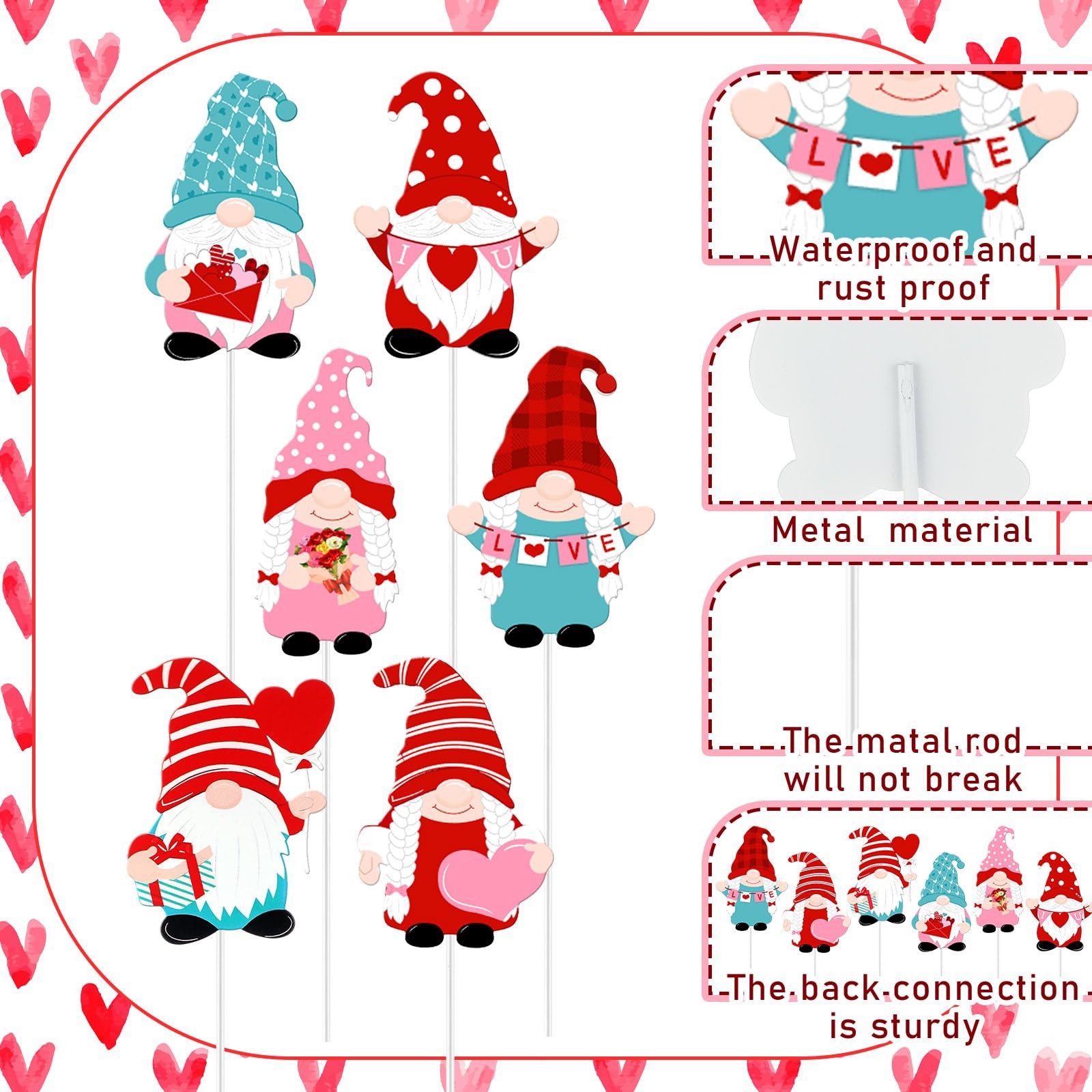 6 Pcs 12 Inch Valentine's Day Metal Yard Sign Valentines Gnome Metal Yard Sig...