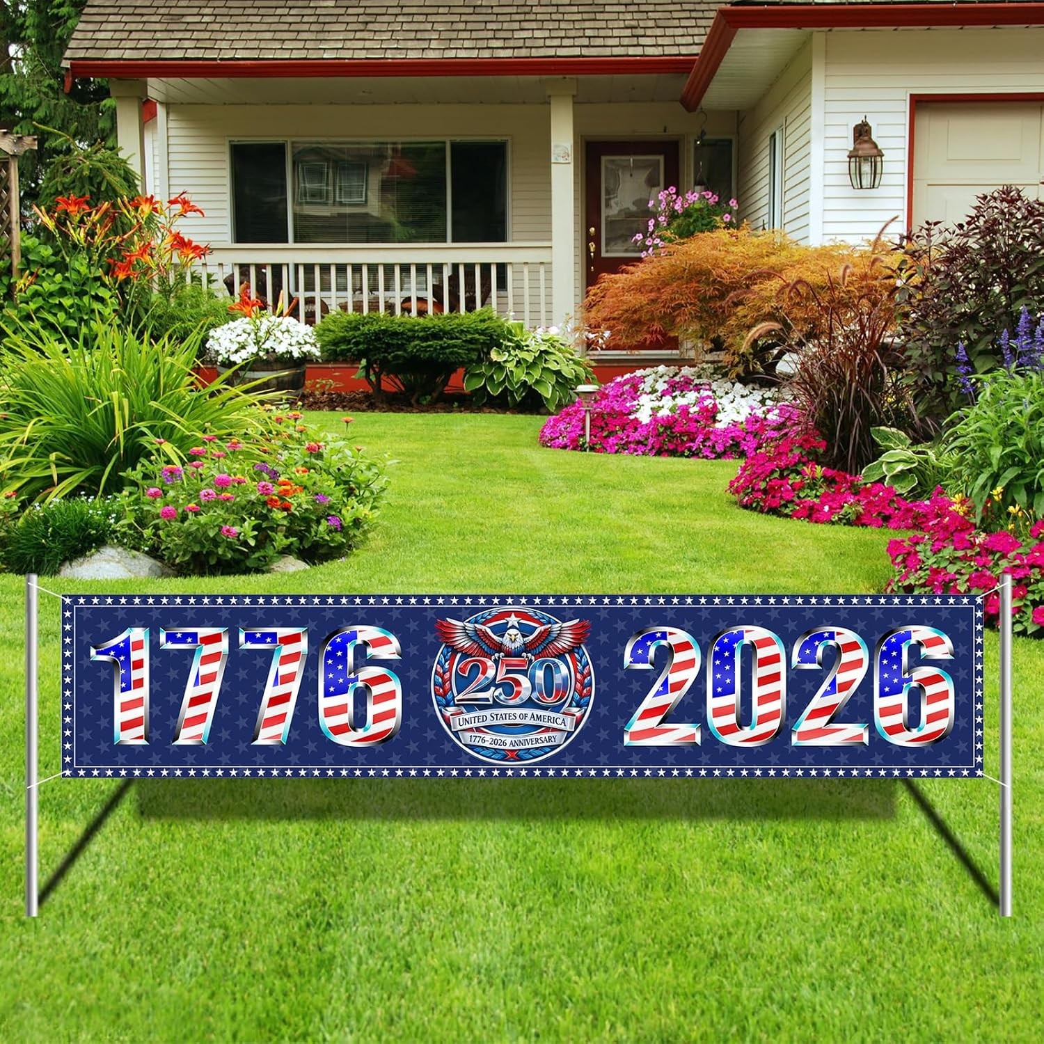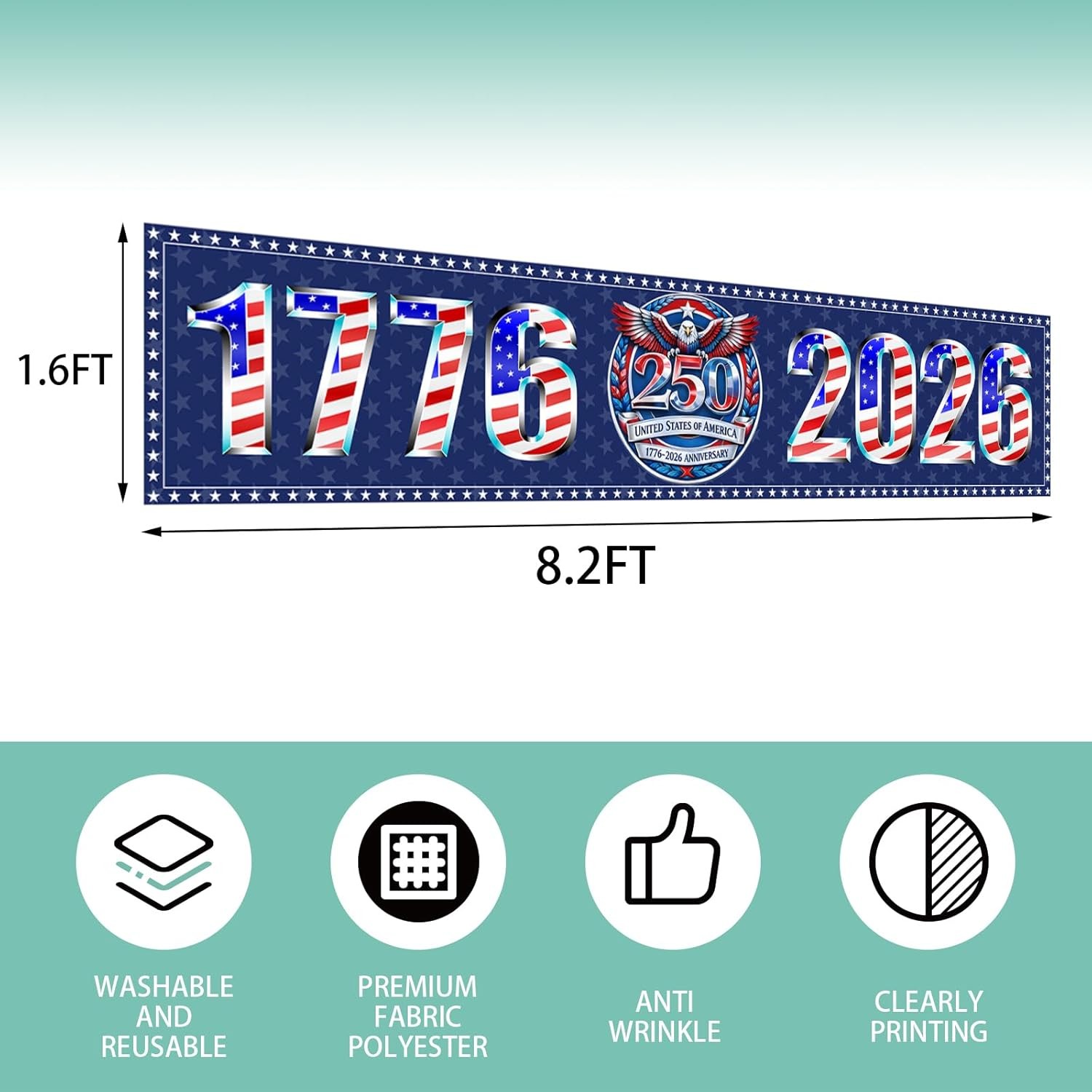 USA 250th Anniversary Banner 1776-2026 Patriotic 4th July Outdoor Decor 8.2FT