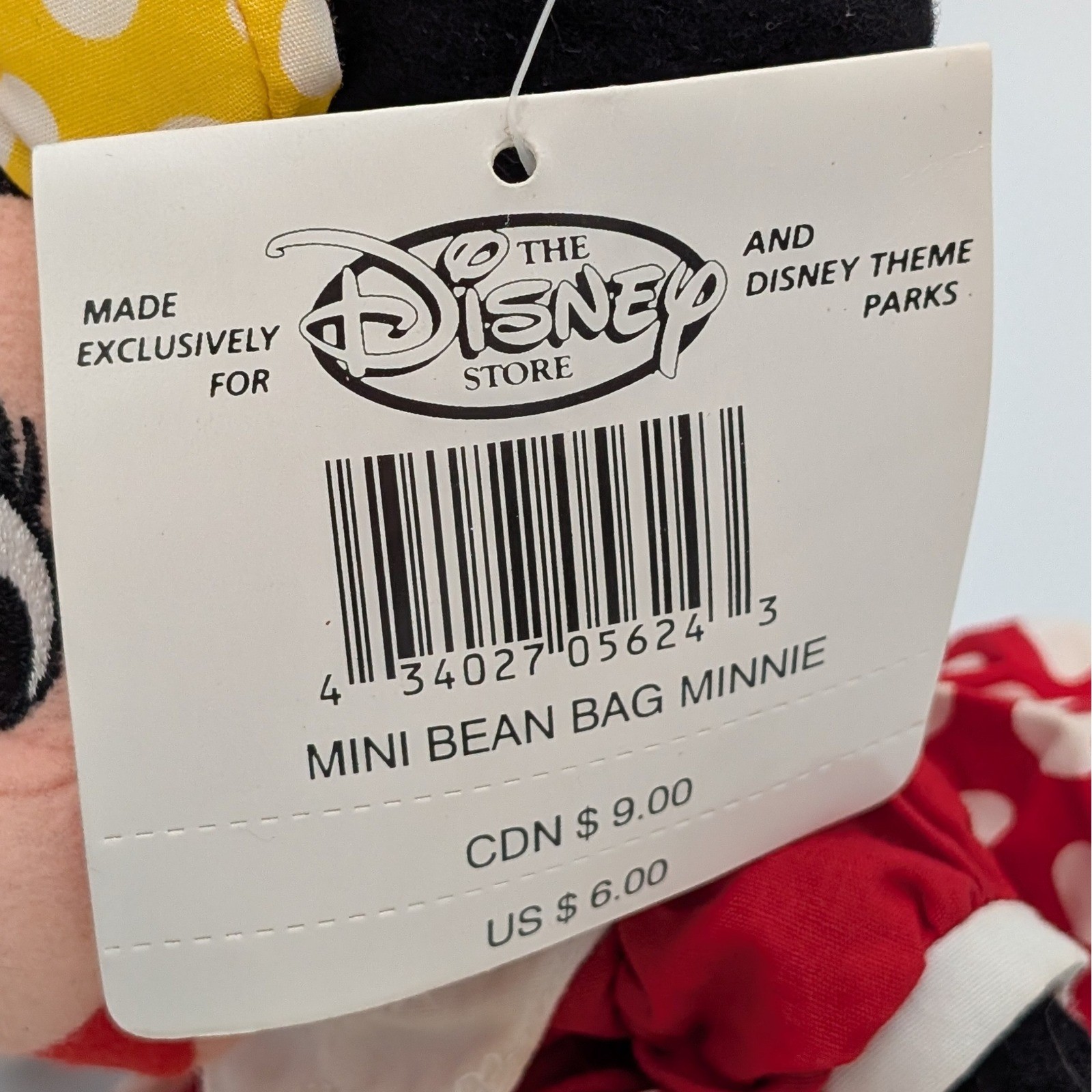 VTG Disney Store Minnie Mouse Mini Bean Bag Plush Red Polka Dot Dress Yellow Bow