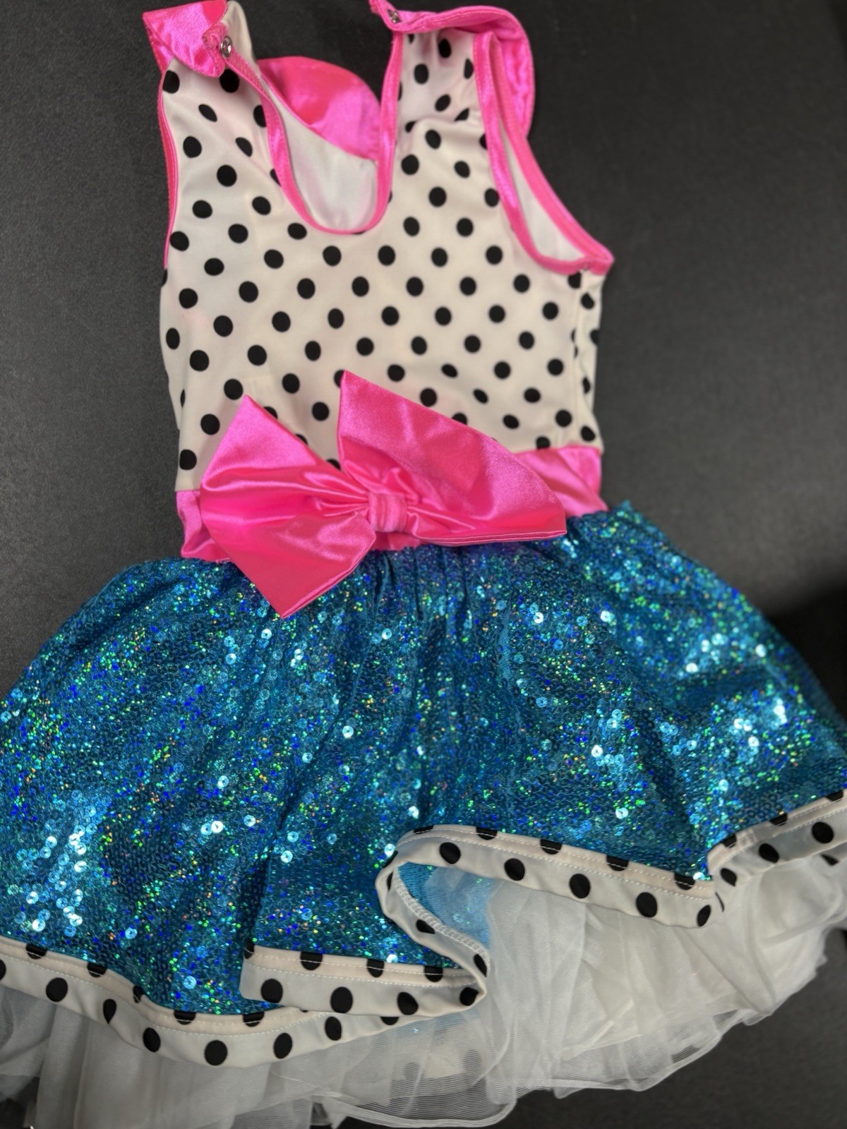 Weissman Girls XSC Blue Pink White Black Polka Dot Dance Costume MPN 115048430