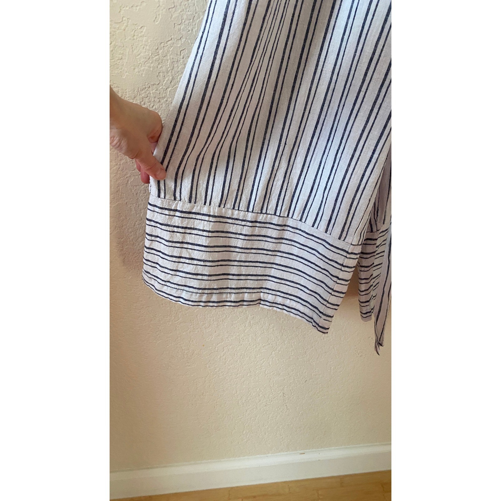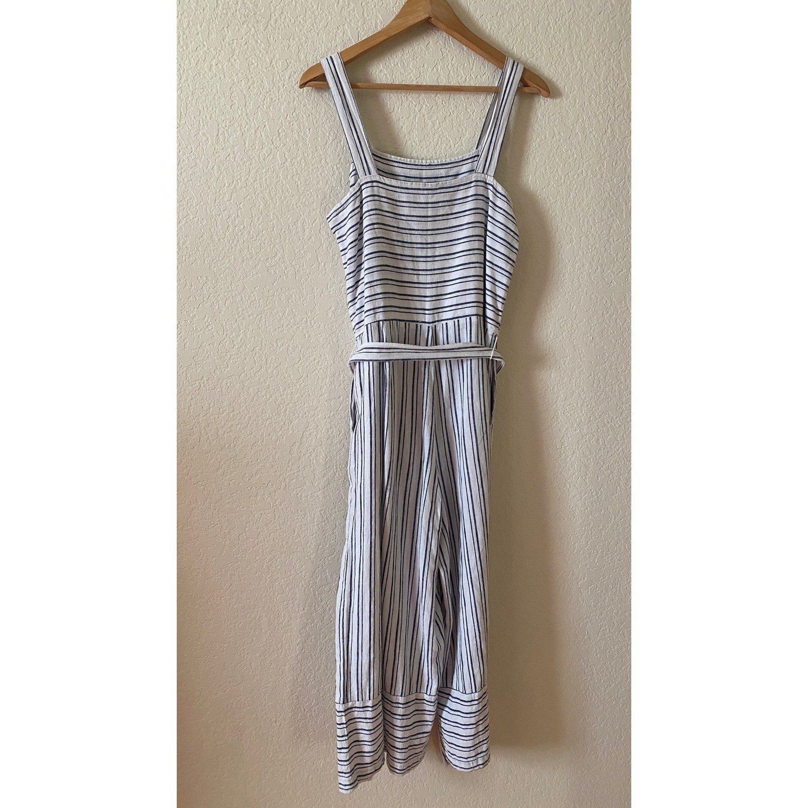 как выглядит BeachLunchLounge Jumpsuit Sz S Blue White Striped Linen Wide Leg Festival Beach фото