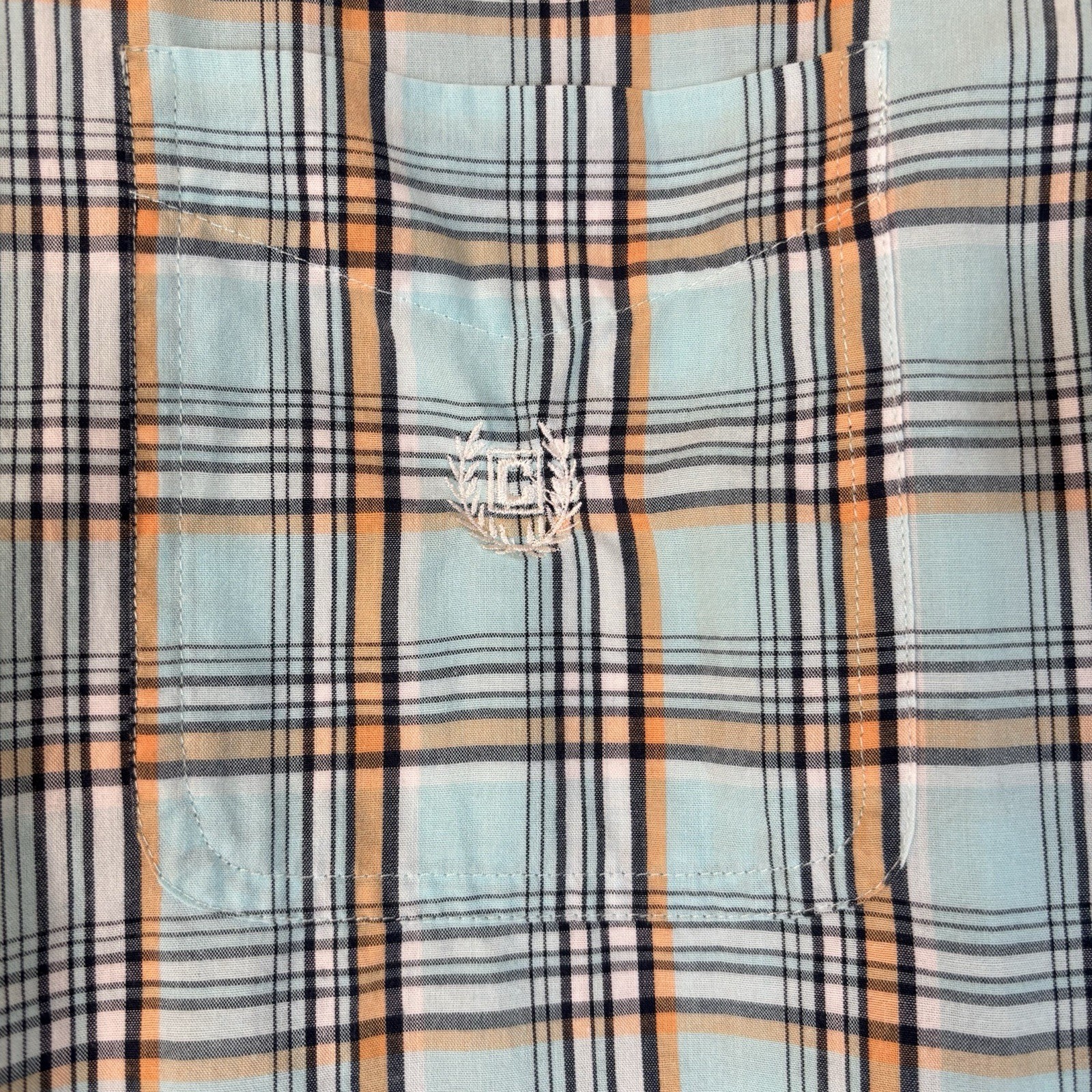 как выглядит Chaps Men s XL Plaid Button Front Shirt Short Sleeve Blue Orange Easy Care фото