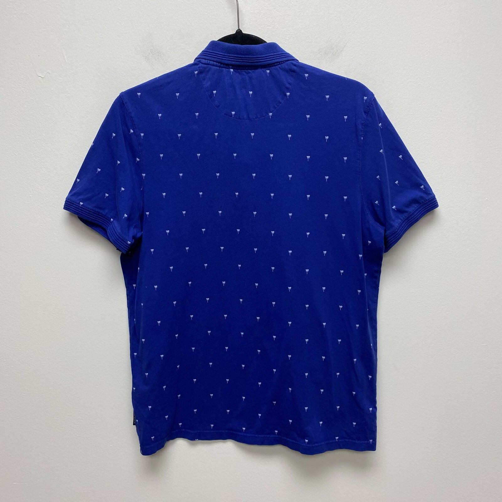 Ted Baker Mens Blue Golf All Over Printed Palm Tree Short Sleeve Polo Shirt 3/M
