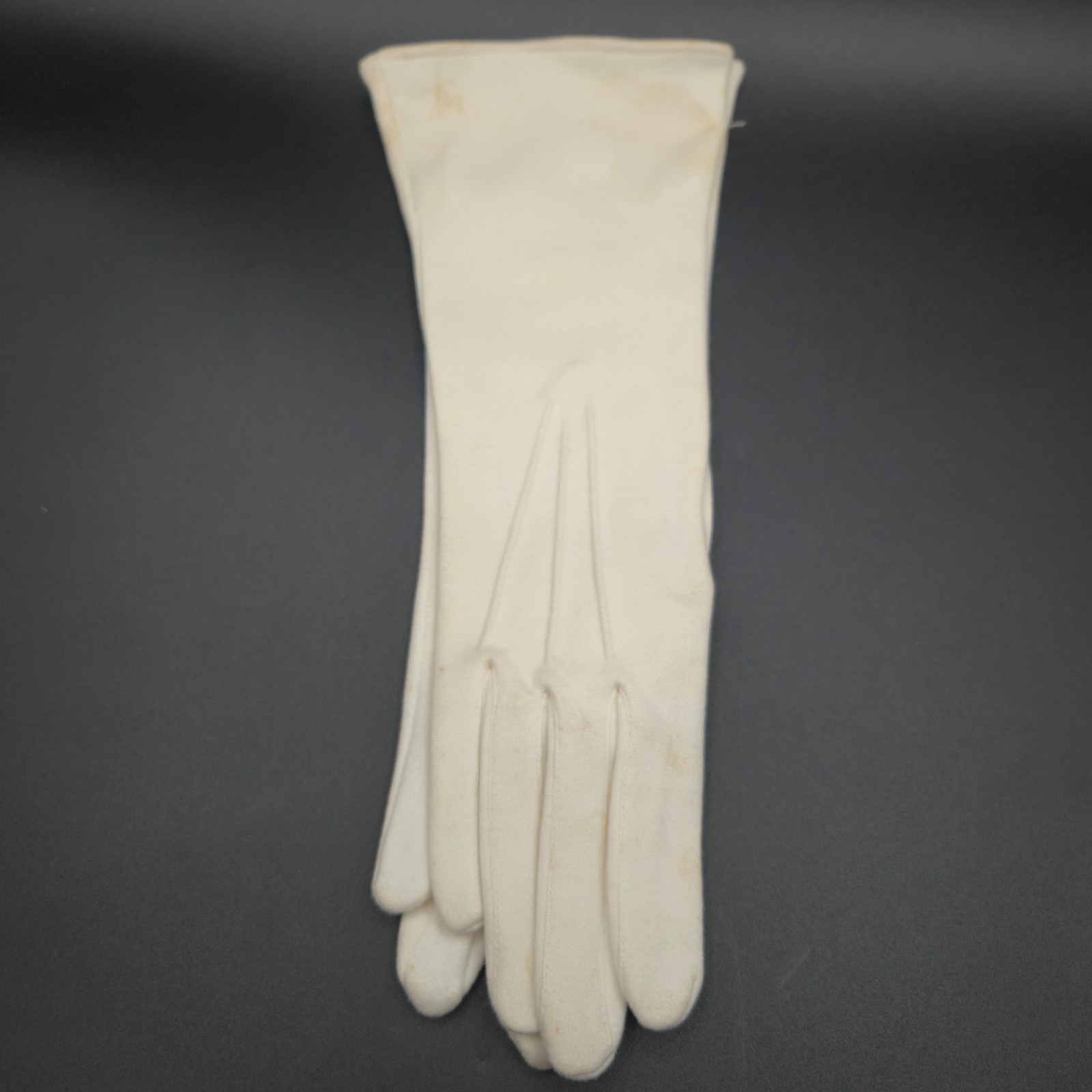 VINTAGE Womens Ivory Opera Gloves Cotton Formal Costume Wedding Long 12in