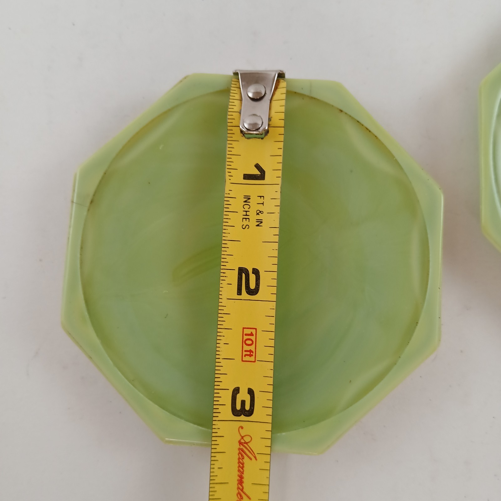 как выглядит Vintage Akro Agate Children s Plates 4 pcs Jadeite Green Octagonal Slag Glass фото
