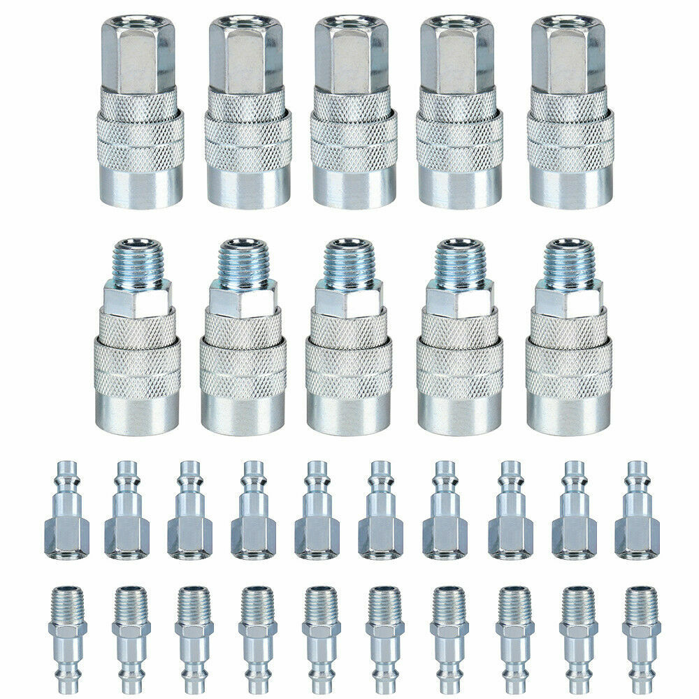 30pcs Air Hose Fittings, 1/4 NPT Quick Connect Air Coupler and Plug Kit Silver