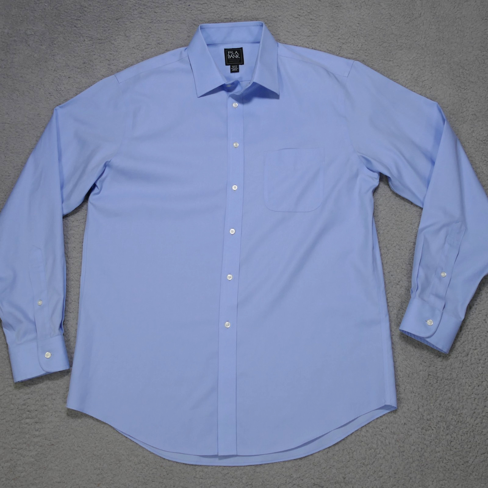 как выглядит Jos A Bank Traveler Dress Shirt Men 16 1/2-35 SLIM Blue Button Up Long Sleeve фото