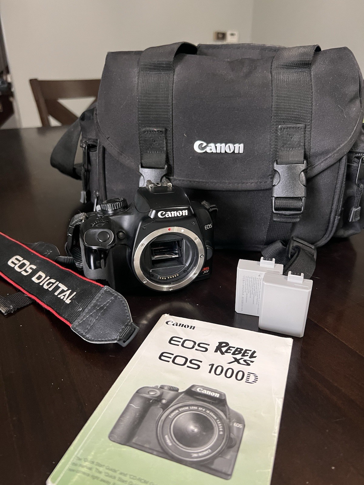 Canon EOS Rebel XS Digital SLR Camera 10.1MP Body, Bag, Batteries, Strap, Manual