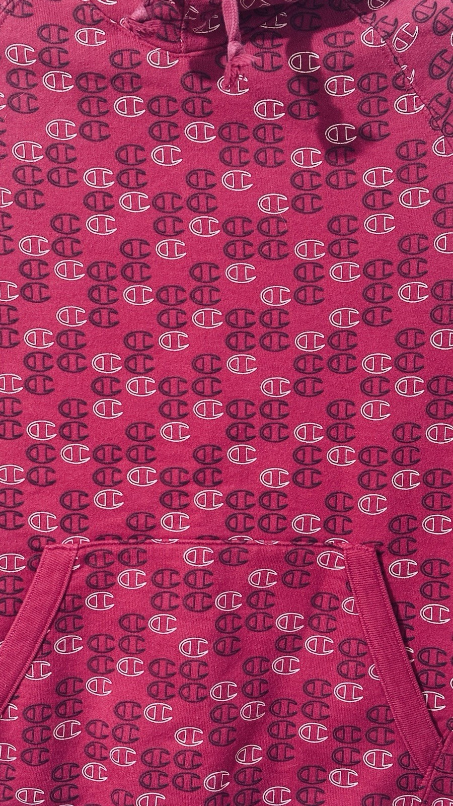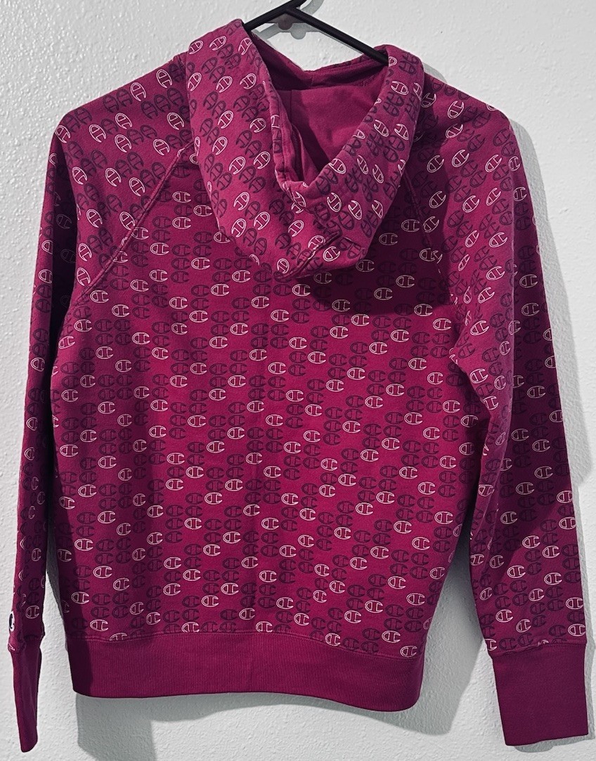как выглядит Champion Womens Sm All Over Print Pink Hoodie Athletic Logo Heavy Lounge фото