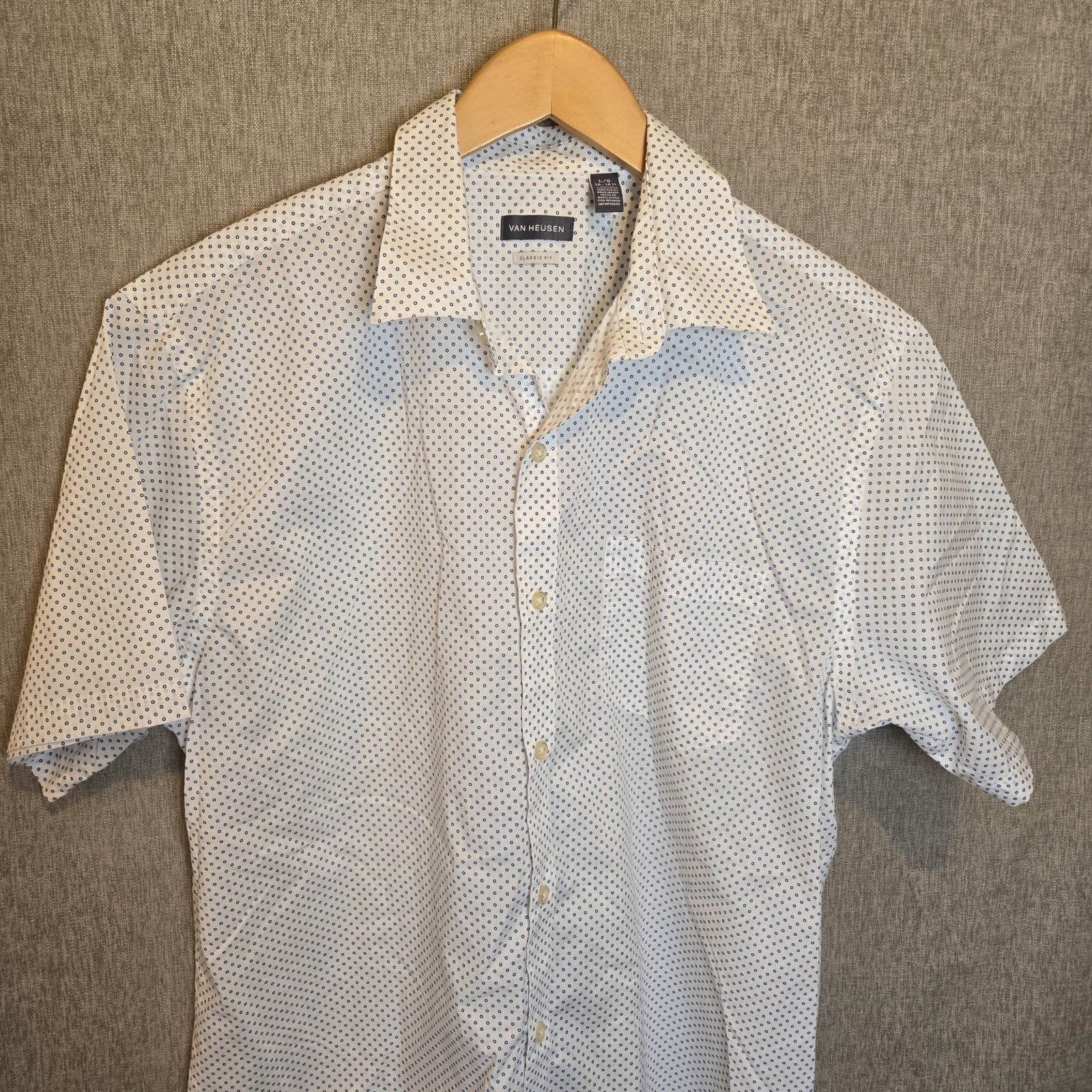 как выглядит Van Heusen Mens Shirt Short Sleeve Large 16-16 1/2 White w Blue Accents фото