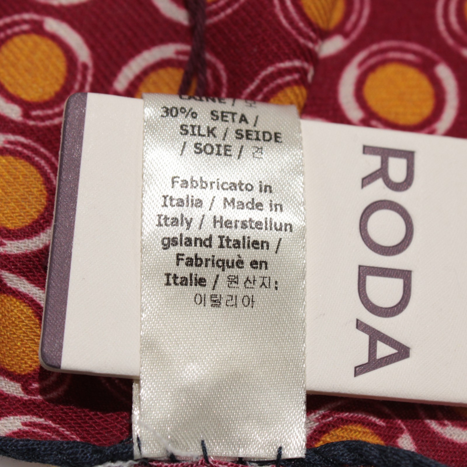 как выглядит Roda NWT Wool / Silk Blend Pocket Square In Red / Orange / White Geometric Print фото