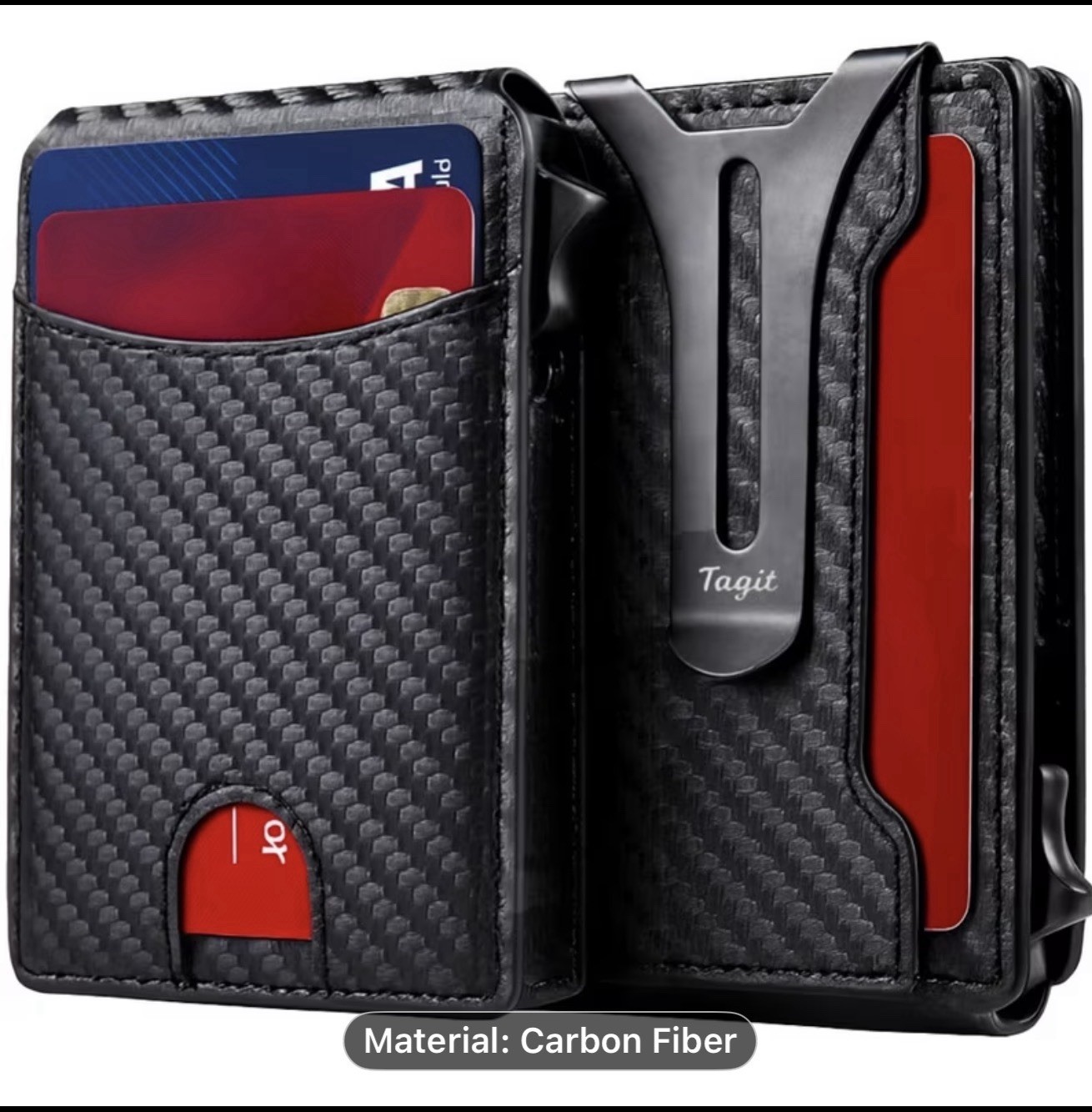 RFID-Blocking Men s Bifold Pop-Up Wallet Carbon Fiber with Money Clip, Mens Gift