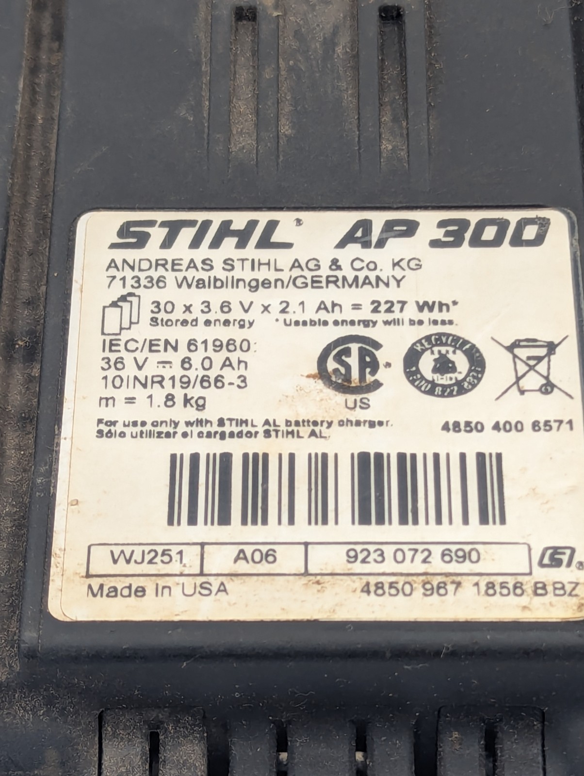 Nonworking Stihl AP 300 36v Lithium Battery 6Ah for Parts/Repair OEM AP300