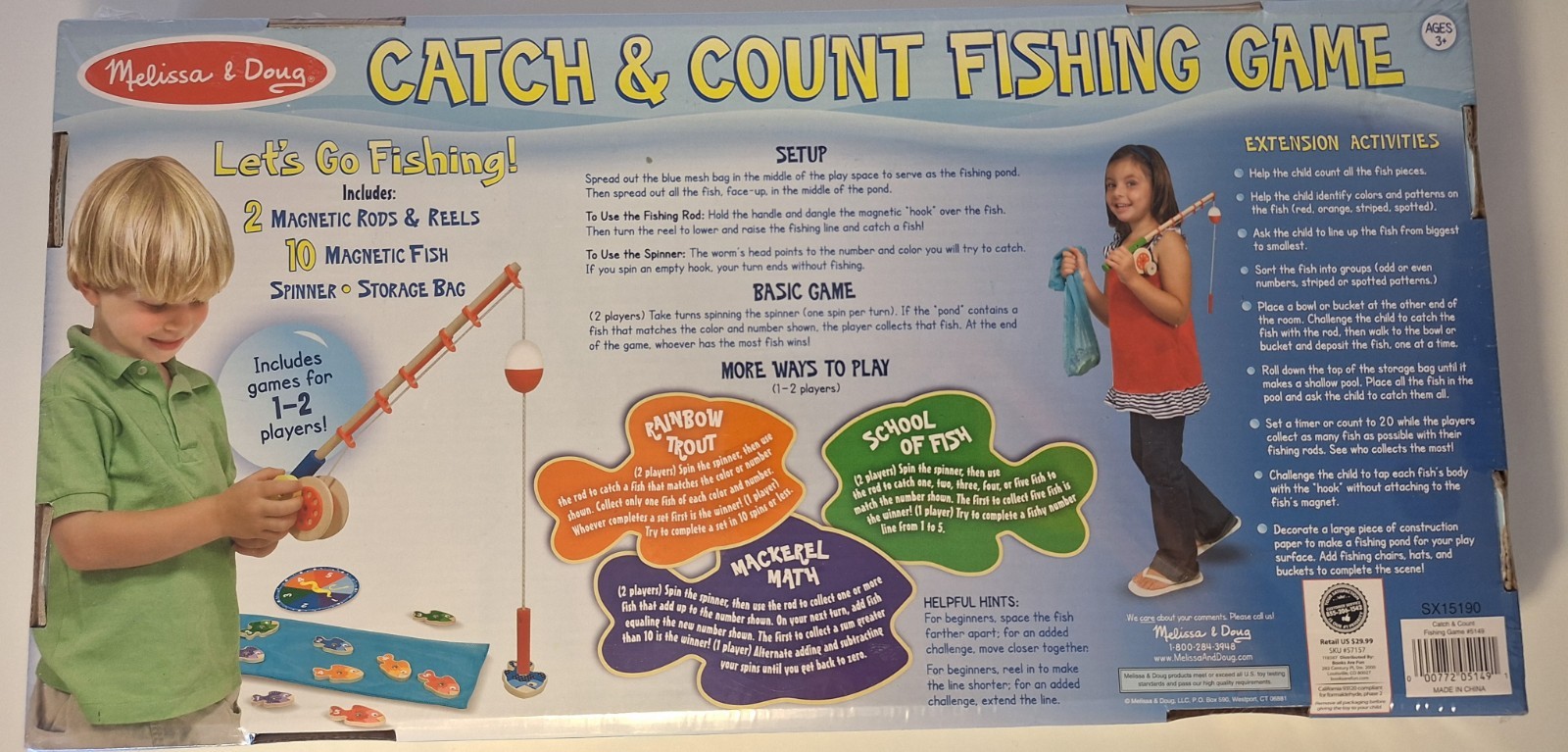 Melissa Doug Catch Count Wooden Fishing Game With 2 Magnetic Rods NEW