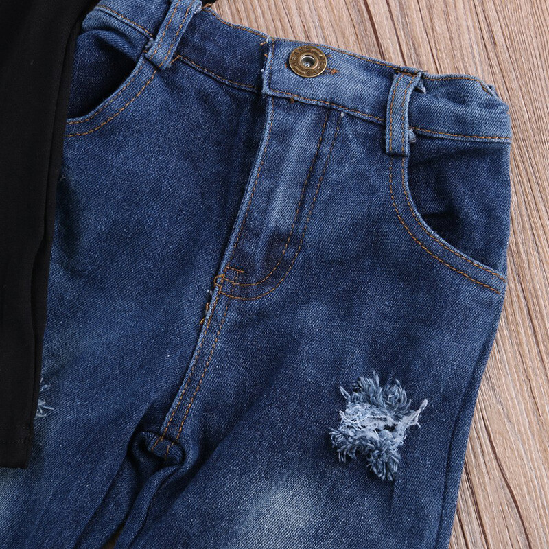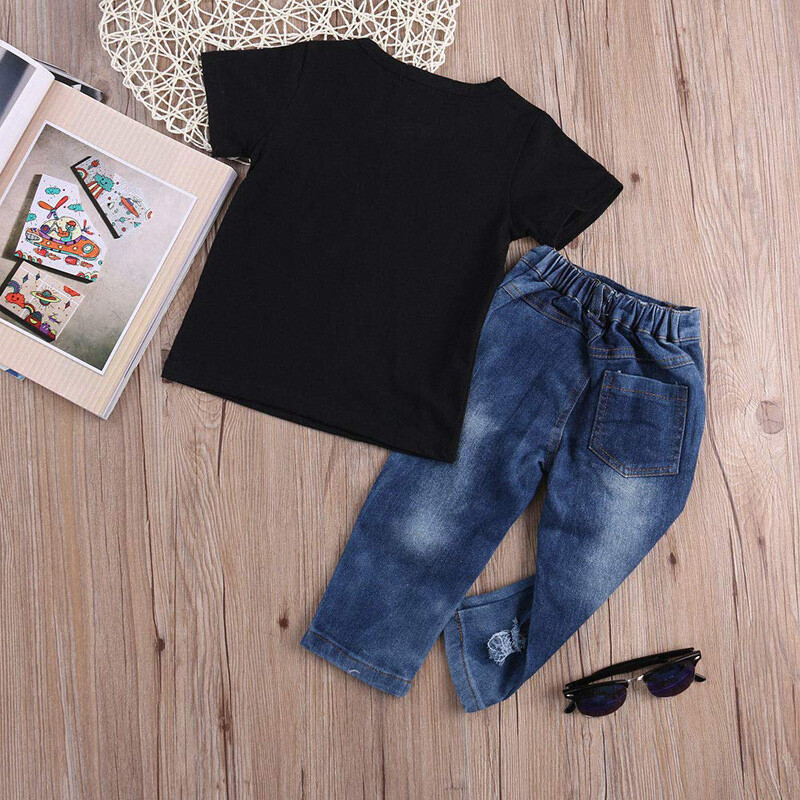 2Pcs Toddler Baby Boy Letter Printed T-Shirt Denim Pants Set Kid Clothes Outfits