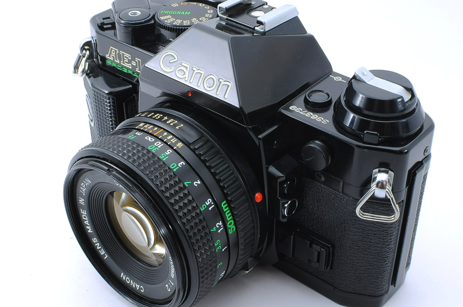 MINT Canon AE-1P Program 35mm SLR Camera BLACK w/ FD 50mm f/2 lens set Japan