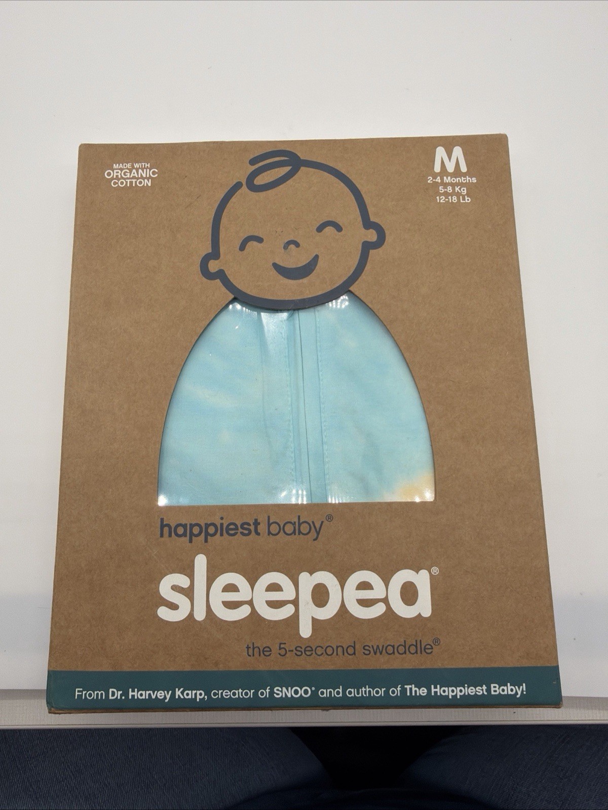 NEW Happiest Baby Sleepea Organic 5-Second Swaddle Size M 2-4 Month Tie Dye