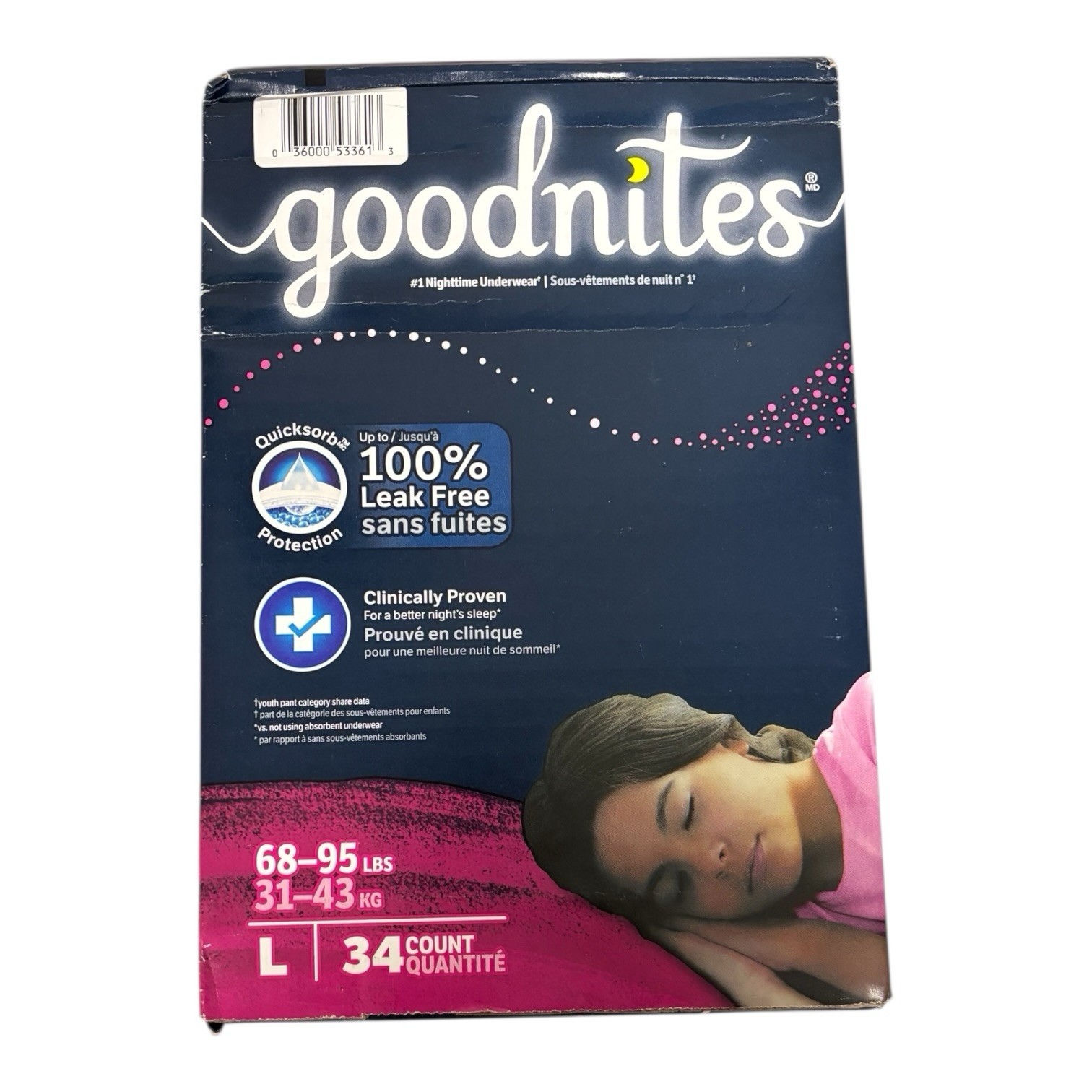 Goodnites Girls Nighttime Bedwetting Underwear, L 68-95 lbs , 34 Count
