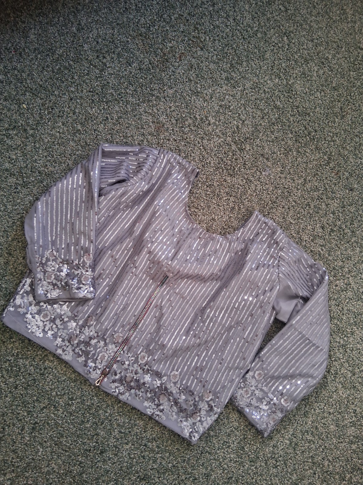 Ready to Wear Sequin Net Saree with Petticoat Full Sleeve Blouse 44 Chest/new