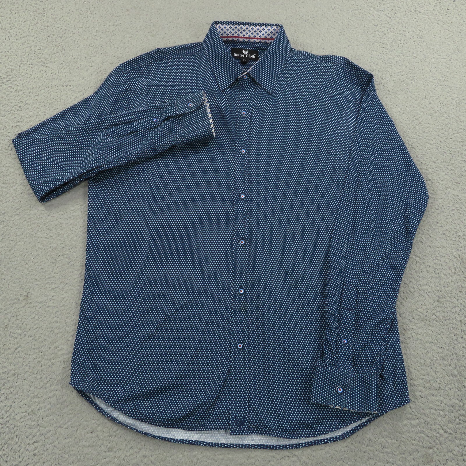 Buttercloth Shirt XL Mens Icy Cotton Navy Geometric Long Sleeve Button Up Flex