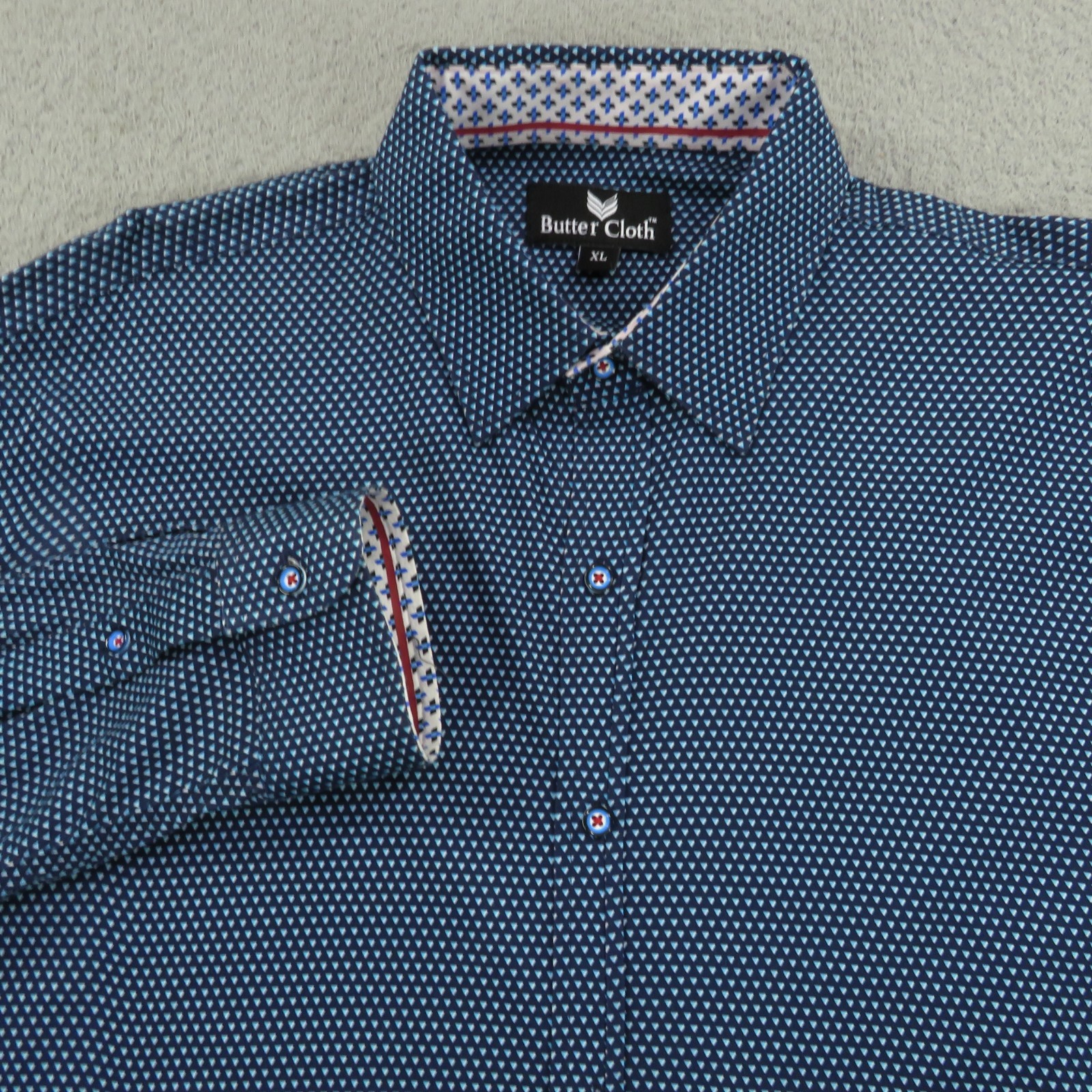 как выглядит Buttercloth Shirt XL Mens Icy Cotton Navy Geometric Long Sleeve Button Up Flex фото