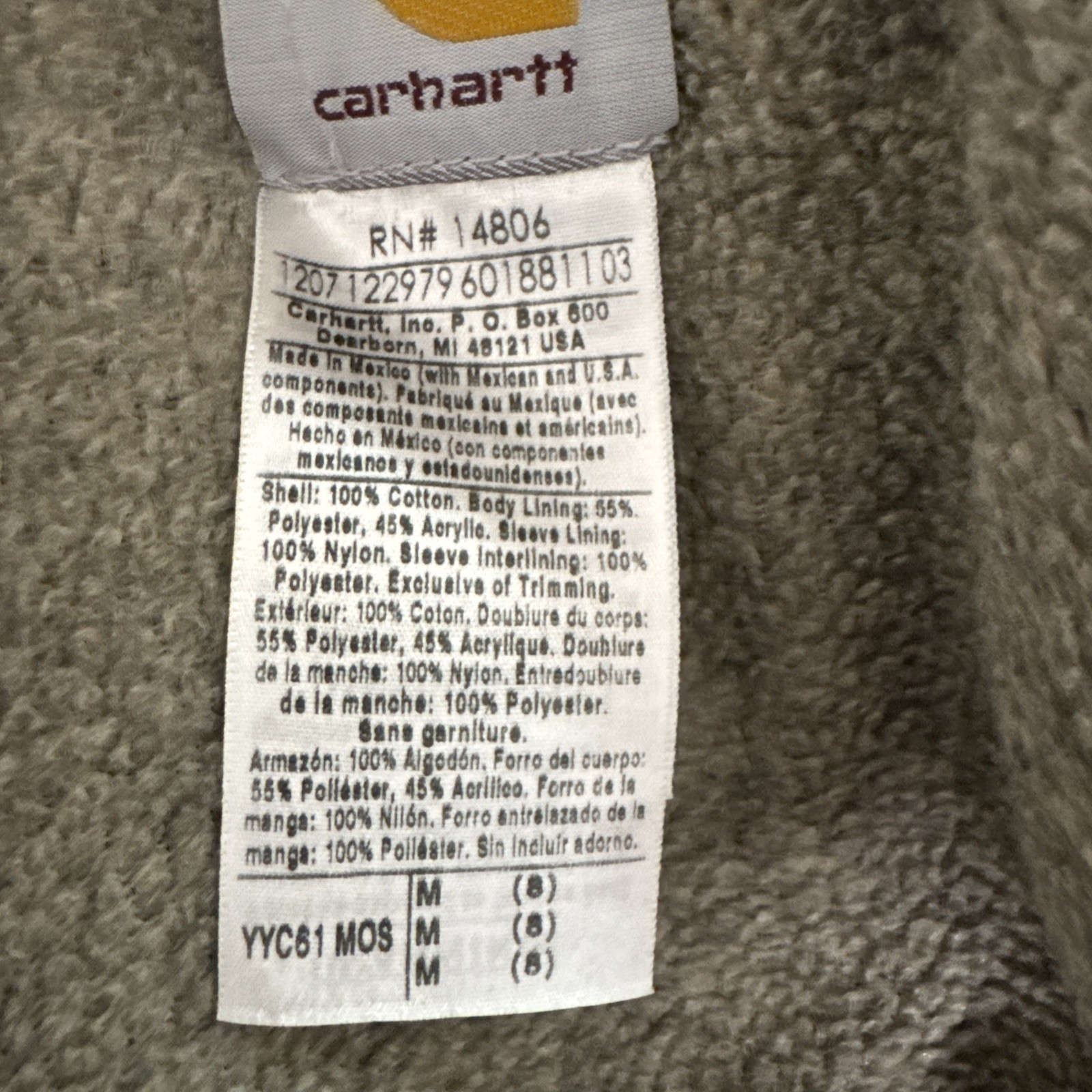 Carhartt Jacket Youth Size 8 Green Canvas Duck Sherpa lined Outdoor YYC61 MOS