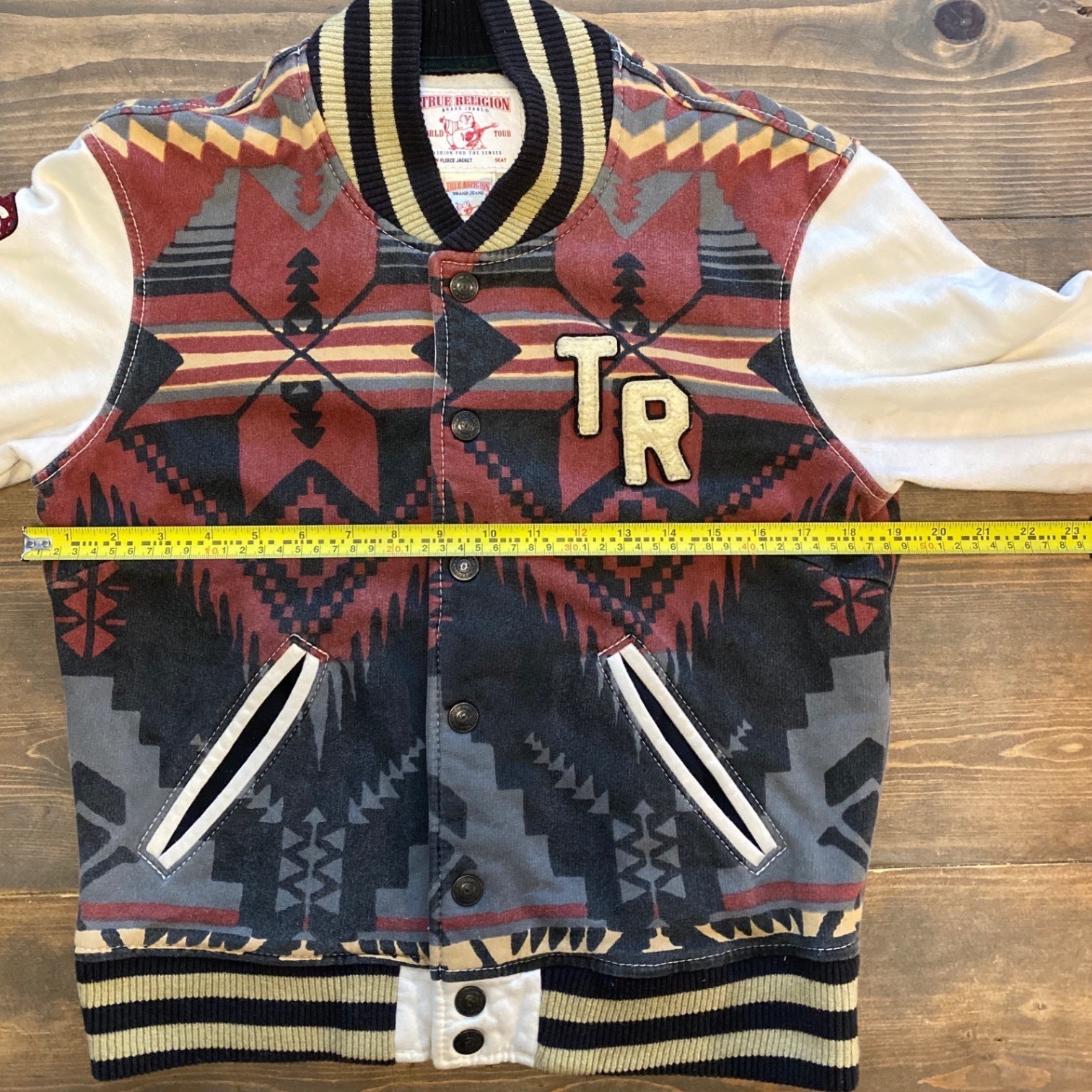 True Religion Serape Print Kids Varsity Knit Jacket Geometric Print TR Logo