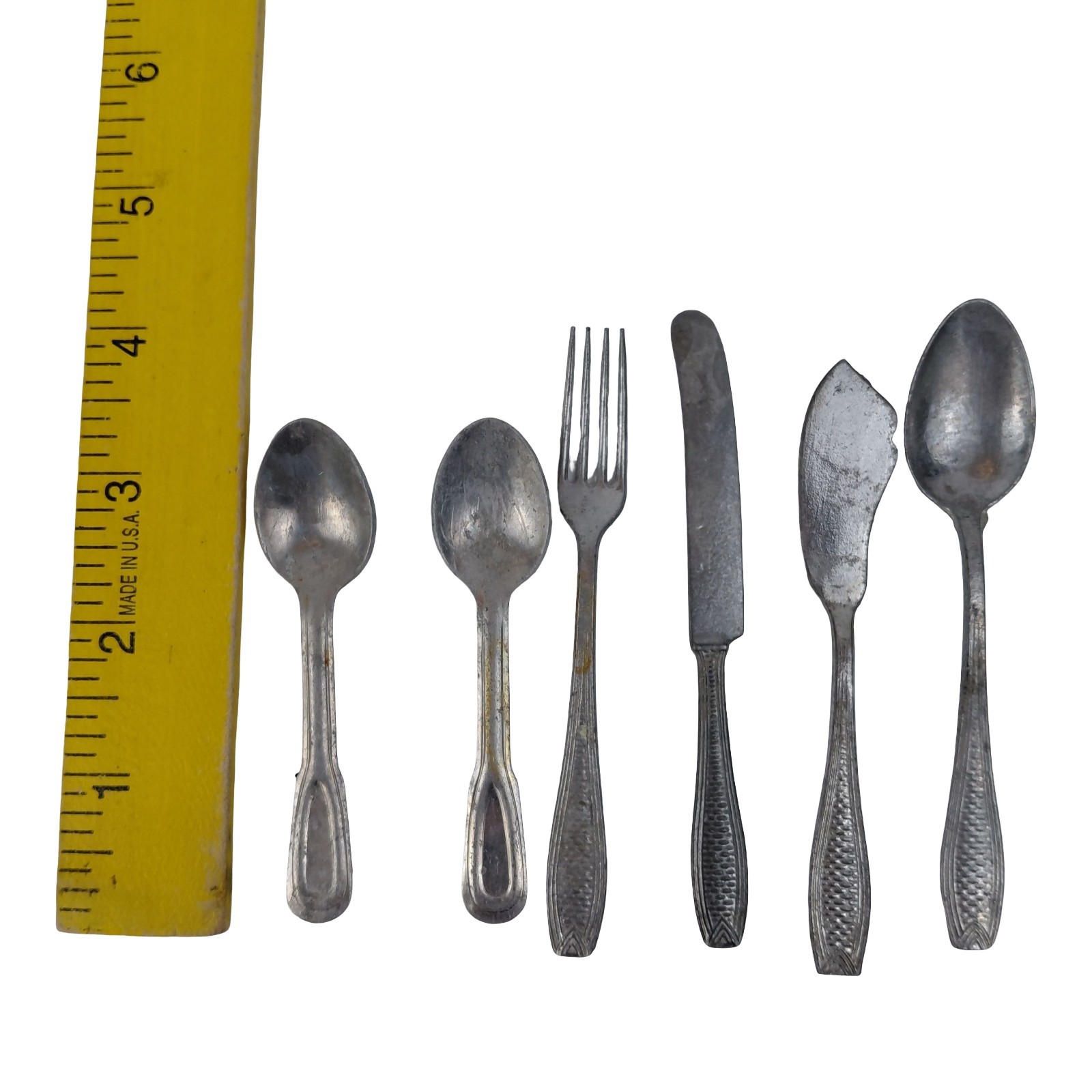 Vtg 40's German Children's Doll Aluminum Flatware Set Fork Butter Knife Spoons