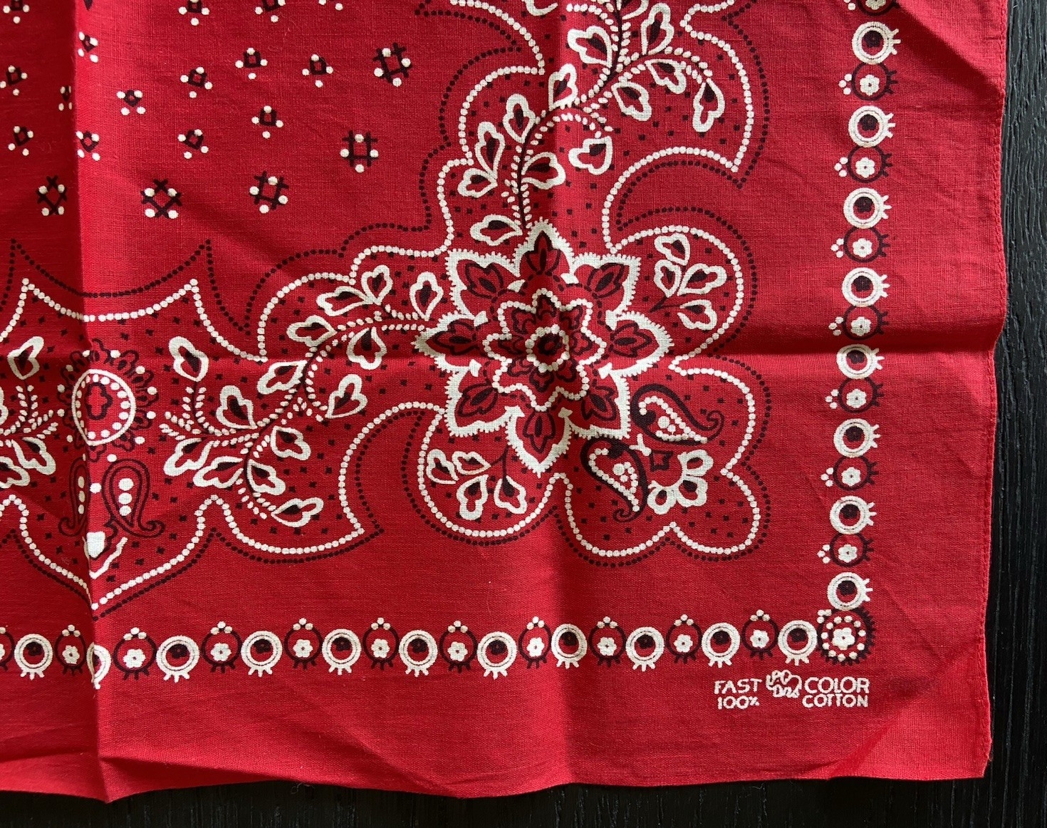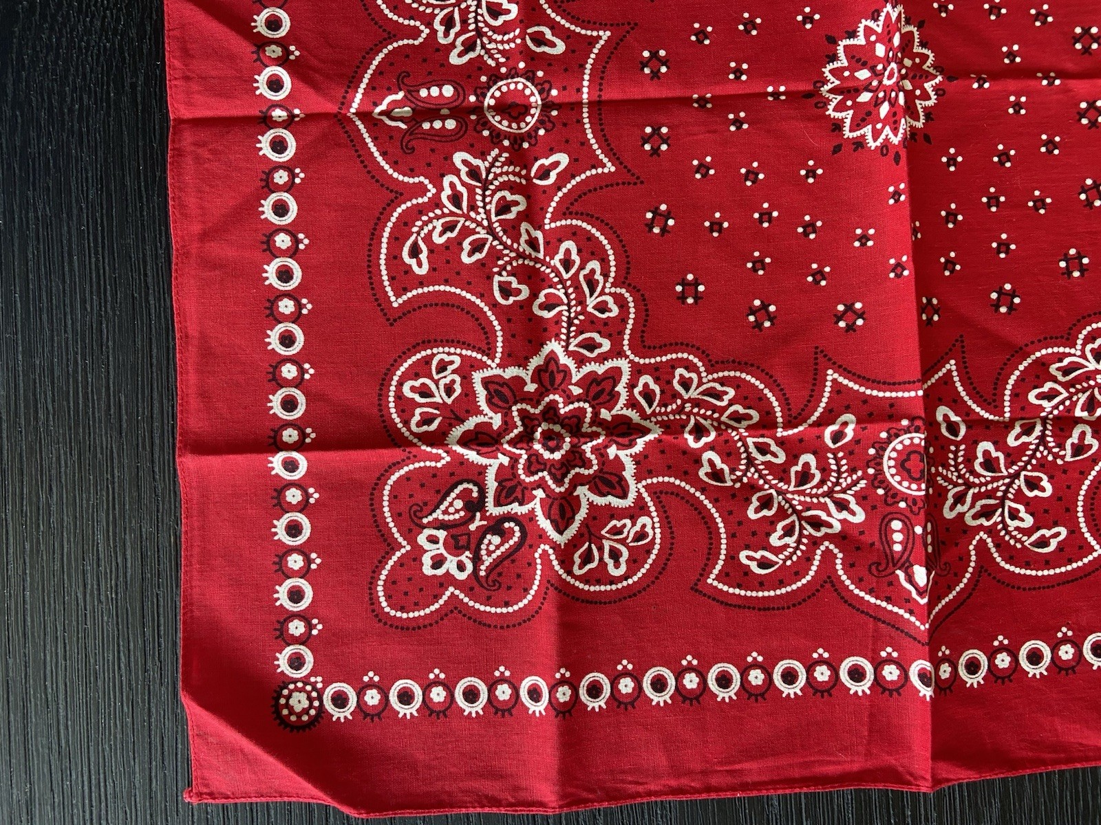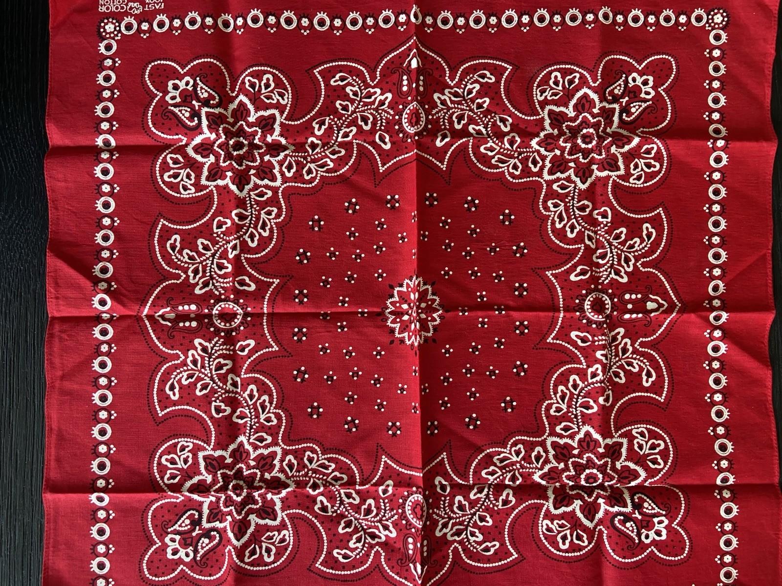 как выглядит Vintage Fast Color All Cotton Red Geometric Floral Bandana Trunk Up фото