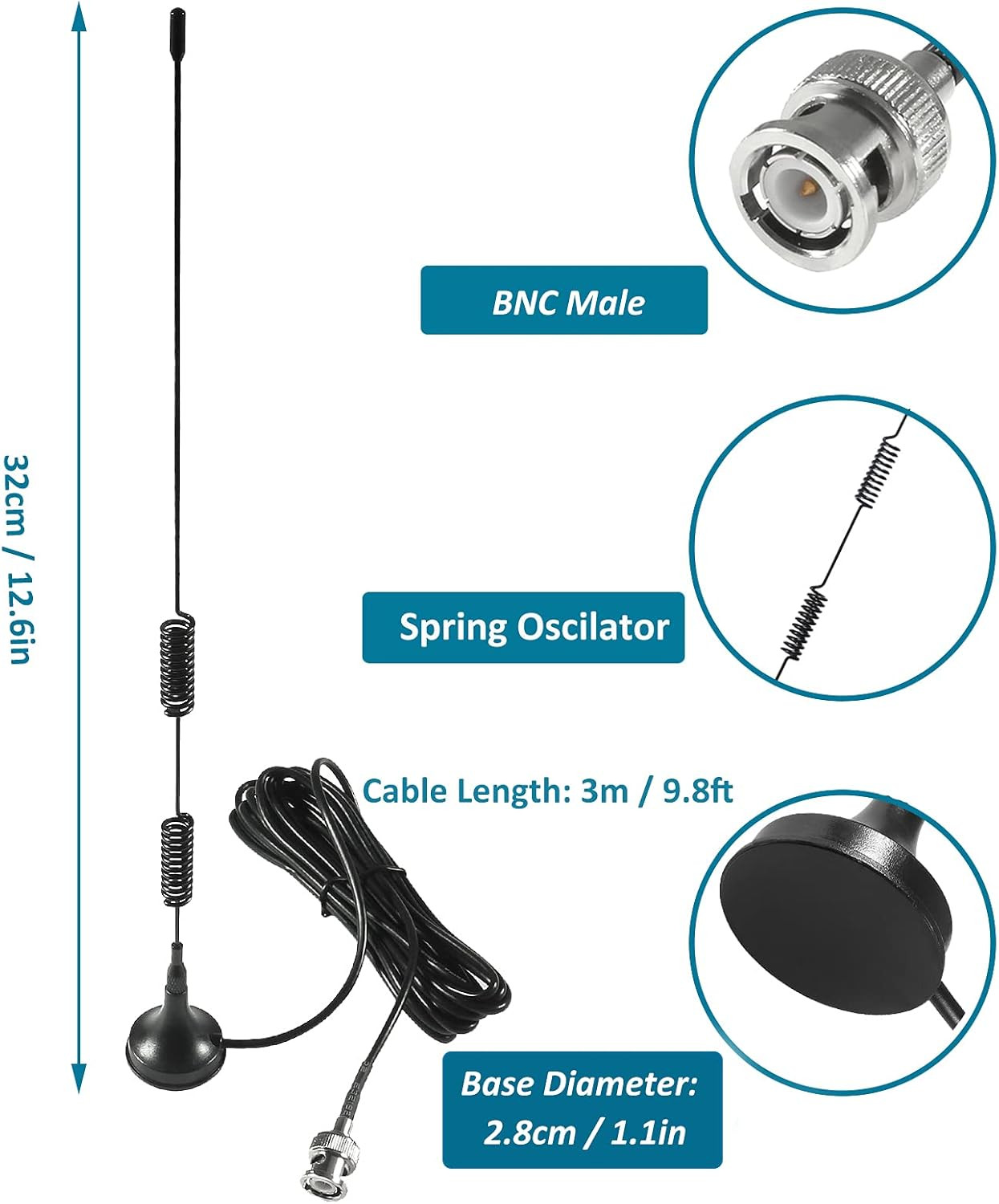 2Pcs Police Scanner Antenna HF VHF UHF 20-1300Mhz BNC Male Antenna for Radio Sha