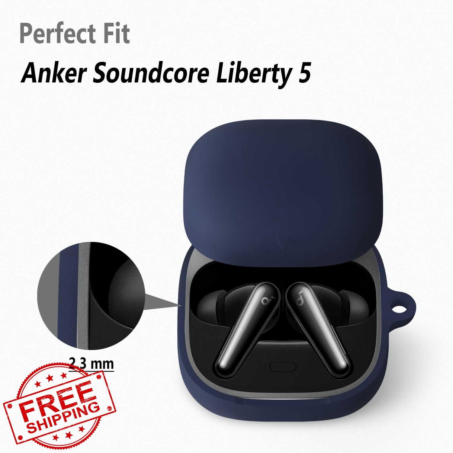 Geiomoo Anker Soundcore Liberty 5 Case Navy Blue Silicone Cover