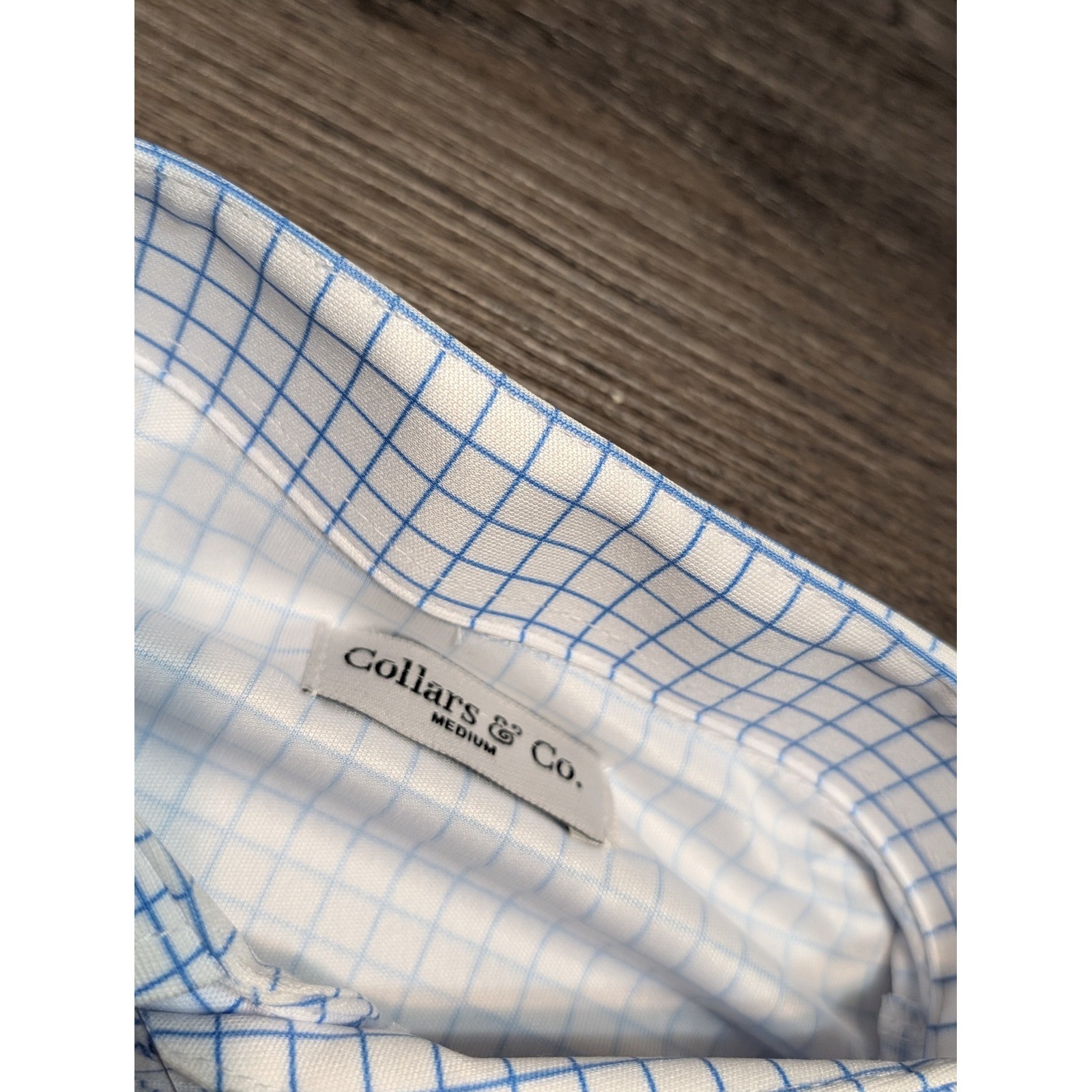 Collars Co Mens Medium Checkered Short Sleeve Polo Shirt White Blue