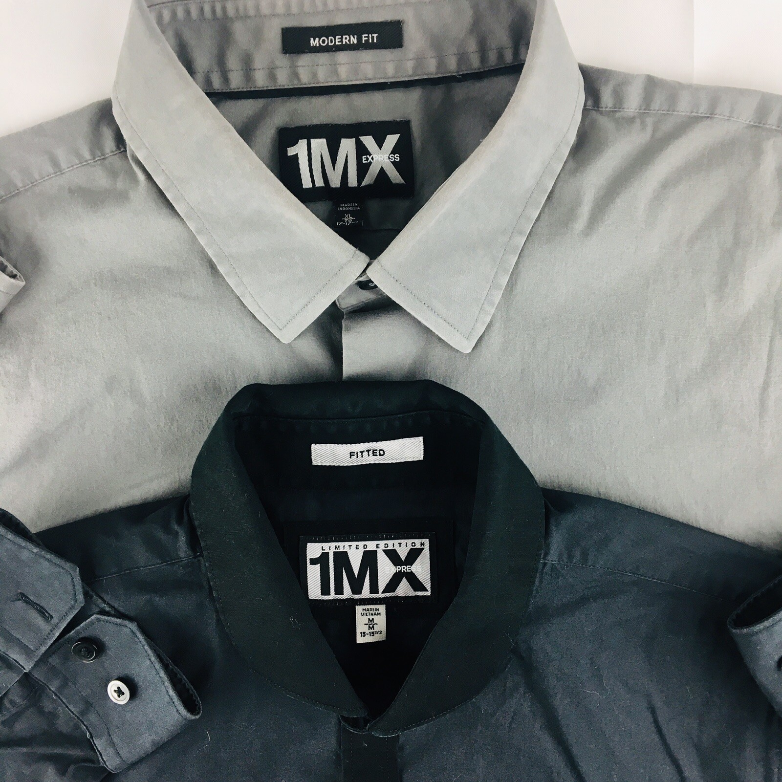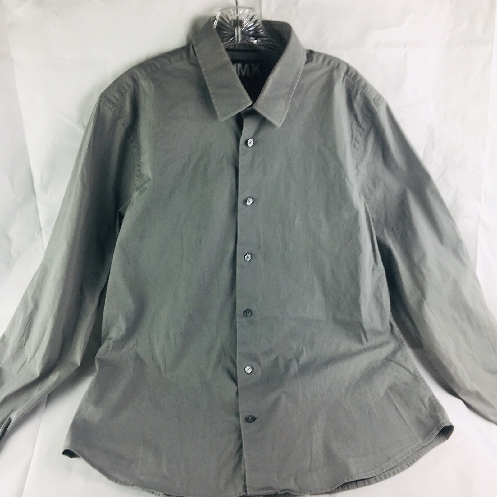 2 Express 1MX Fitted Long Sleeve Button Down Shirts Men's XL Gray Black Dress
