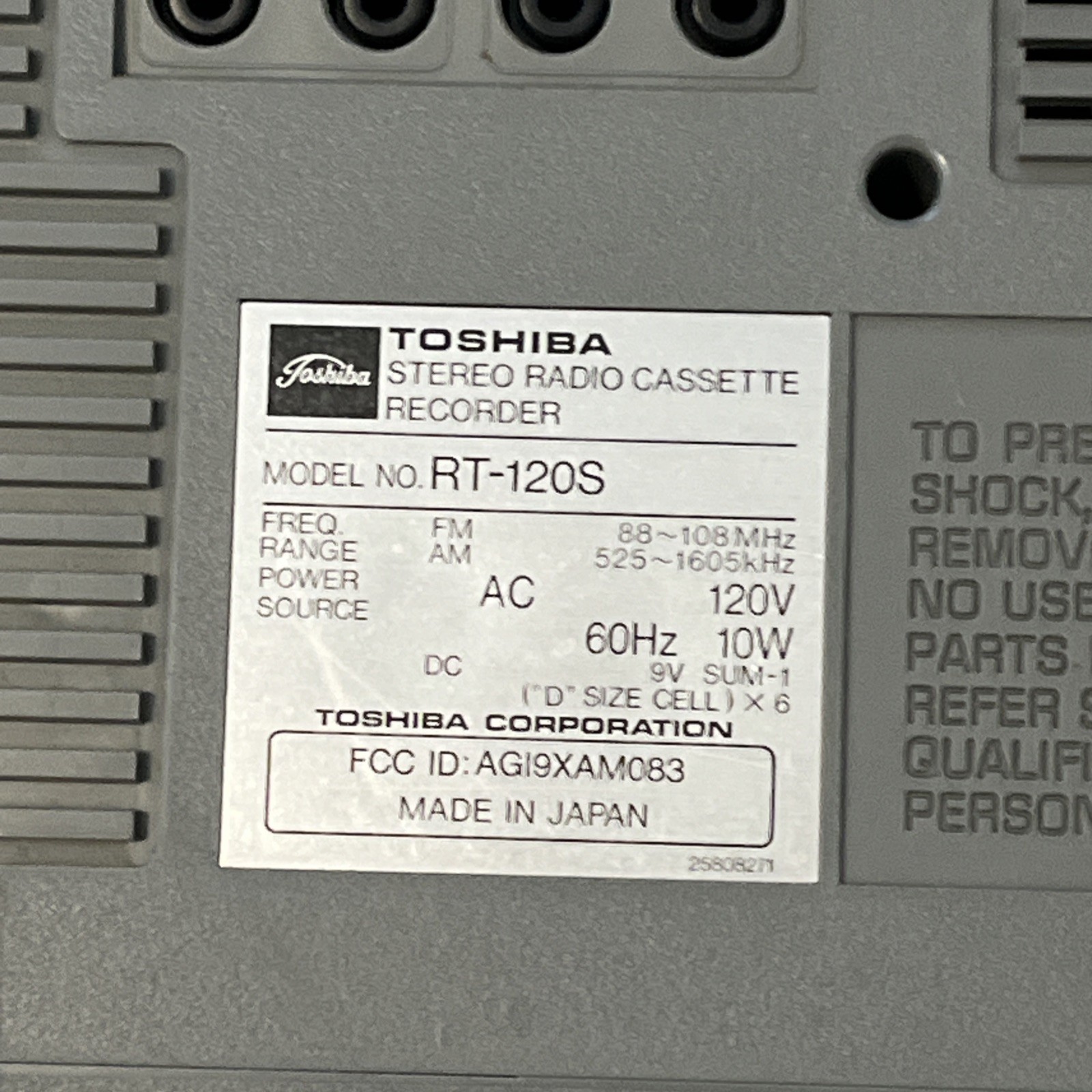 Vtg Toshiba RT-120S Boombox Stereo Radio Cassette Recorder Radio Parts Only