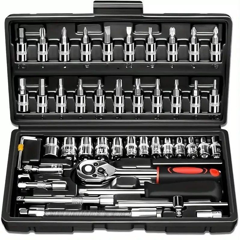 как выглядит 53Pcs Repair Tool Kit 1/4 inch Drive Socket Ratchet Wrench Set with Storage Case фото